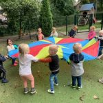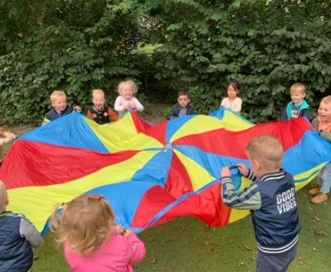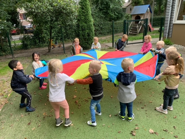Bij Bikkels kan dit op het speelplein volop. Toch is het ook leuk om soms iets anders aan te bieden op het gebied van bewegen. Dit keer hadden we de parachute erbij gepakt. Hij is echt super groot dus voor alle peuters is er een plekje om hem vast te houden. Als eerste gaan we gewoon lekker hard schudden met onze armen. Door de verschillende kleuren van de stof ziet dat er ook nog eens prachtig uit.