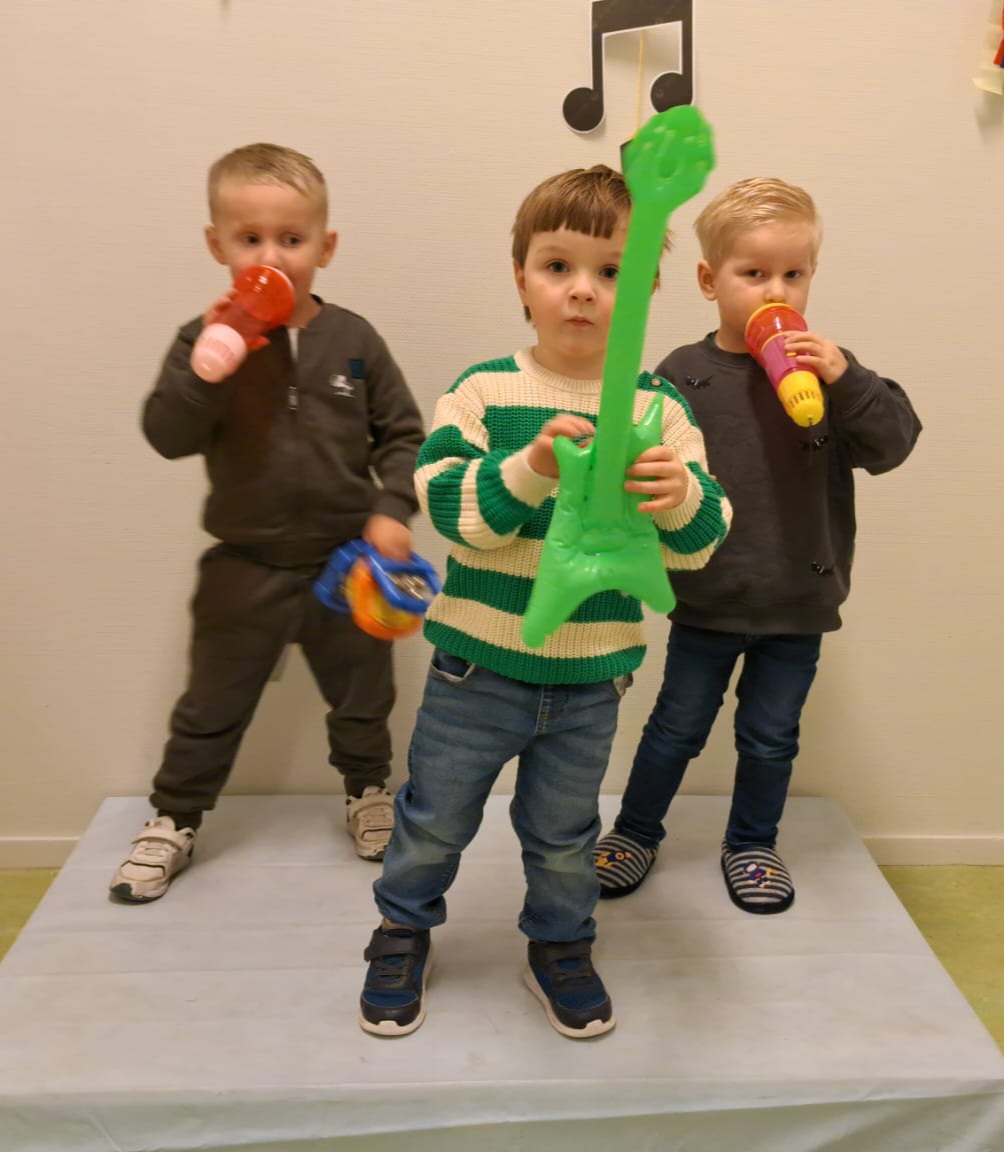We zijn nu gestart met het thema “Wij maken muziek”. Zingen, dansen en muziek maken spreekt enorm aan. Daarom mogen de peuters zelf aan de slag. Onze bouwhoek is nu de muziekhoek, met een heus podium, muziekinstrumenten en microfoons. De kinderen hebben al gauw de smaak te pakken. Met veel tegelijk staan ze op het podium, microfoons in de hand en verschillend instrumenten. Ze zingen, spelen en dansen wat af op het podium.