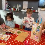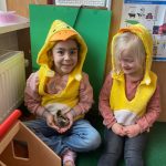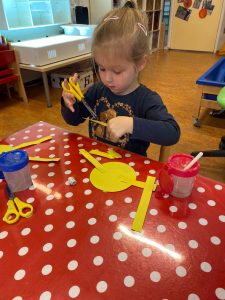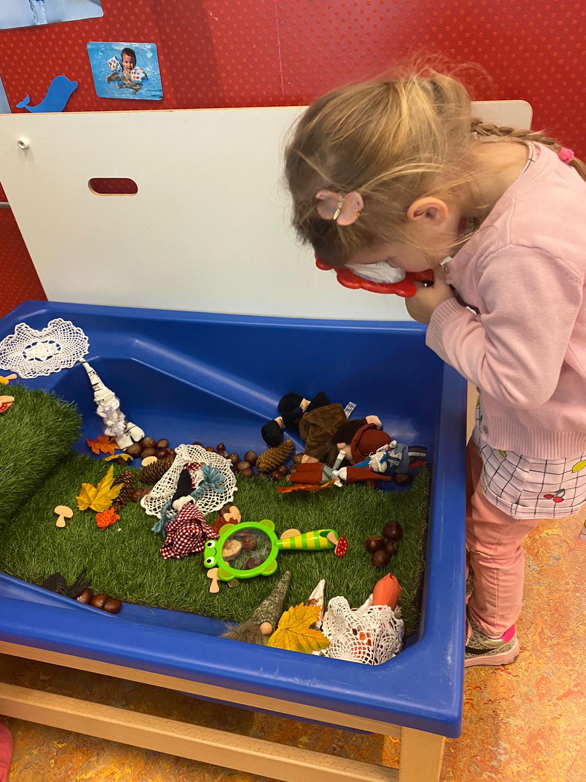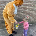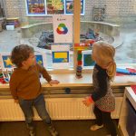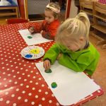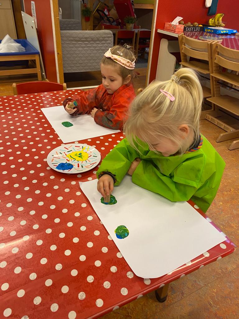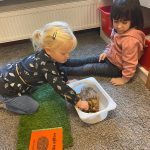 De peuters knutselen een egel en herfstbladeren. Met een afwasborstel en verf krijgt de egels stekels in verschillende kleuren. In de gymzaal wordt een kring gemaakt met in het midden een paddenstoelenkruk. Om de beurt mag een peuter op de paddenstoel zitten om Kabouter Spillebeen na te spelen en zingen wij het liedje ‘op een grote paddenstoel’.