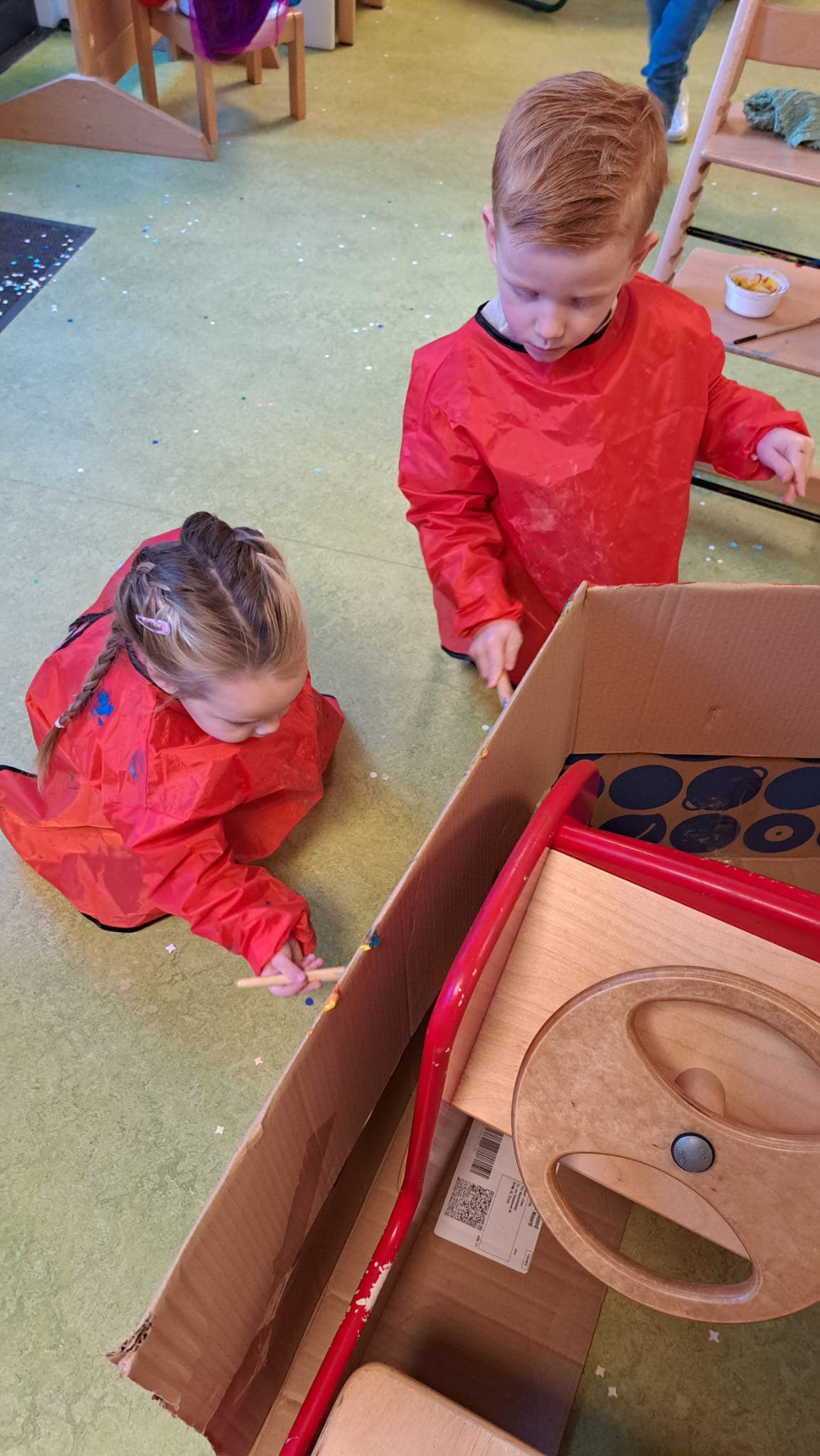 Eerst hadden wij alleen een aquarium, maar wat moet daarin? Samen zoeken wij plantjes en gras. Dit knippen wij uit de tuin. Maar toch waren de peuters niet helemaal enthousiast…. Dus toch met zijn allen de bus in en op naar de dierenwinkel.
