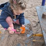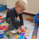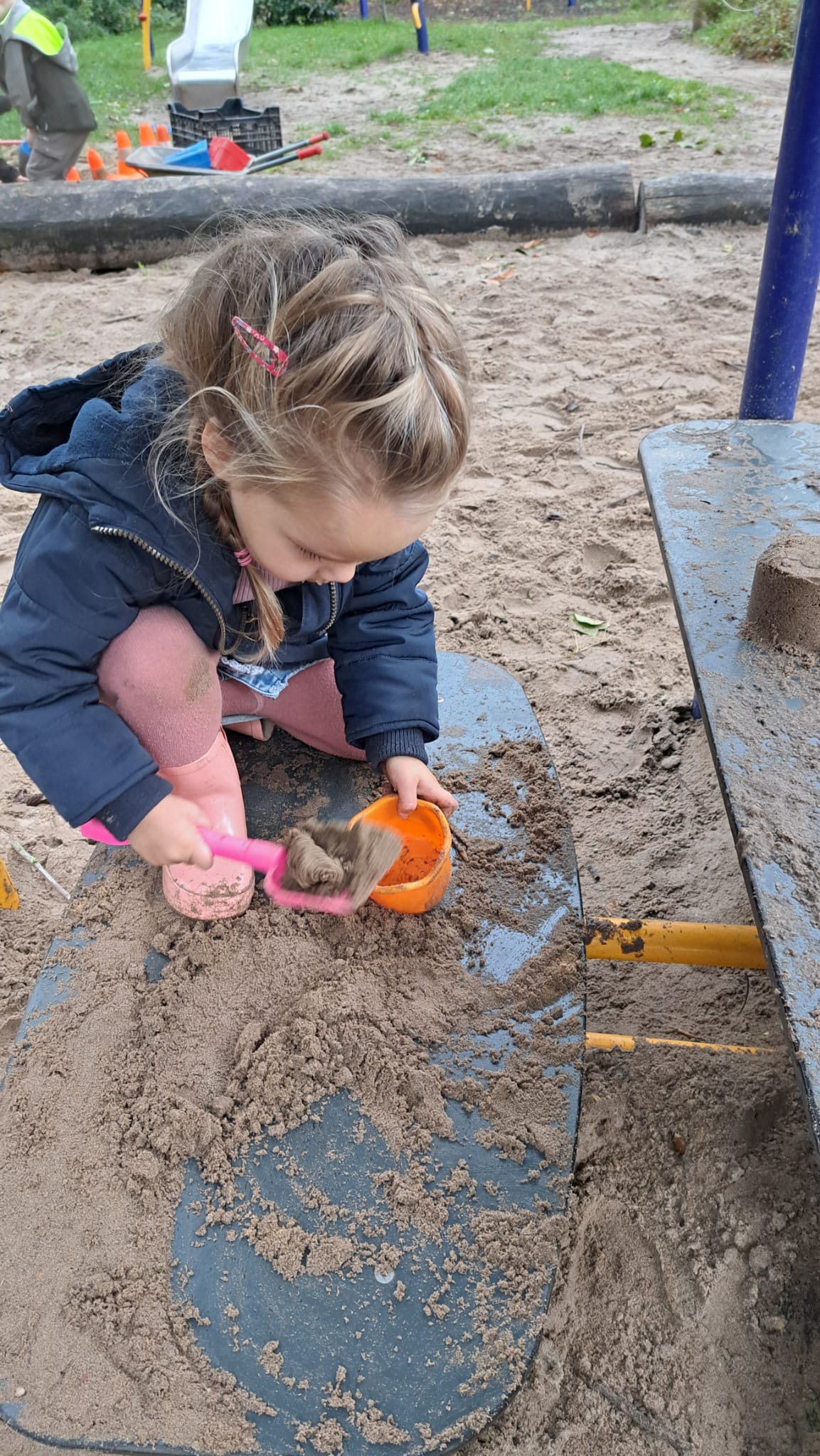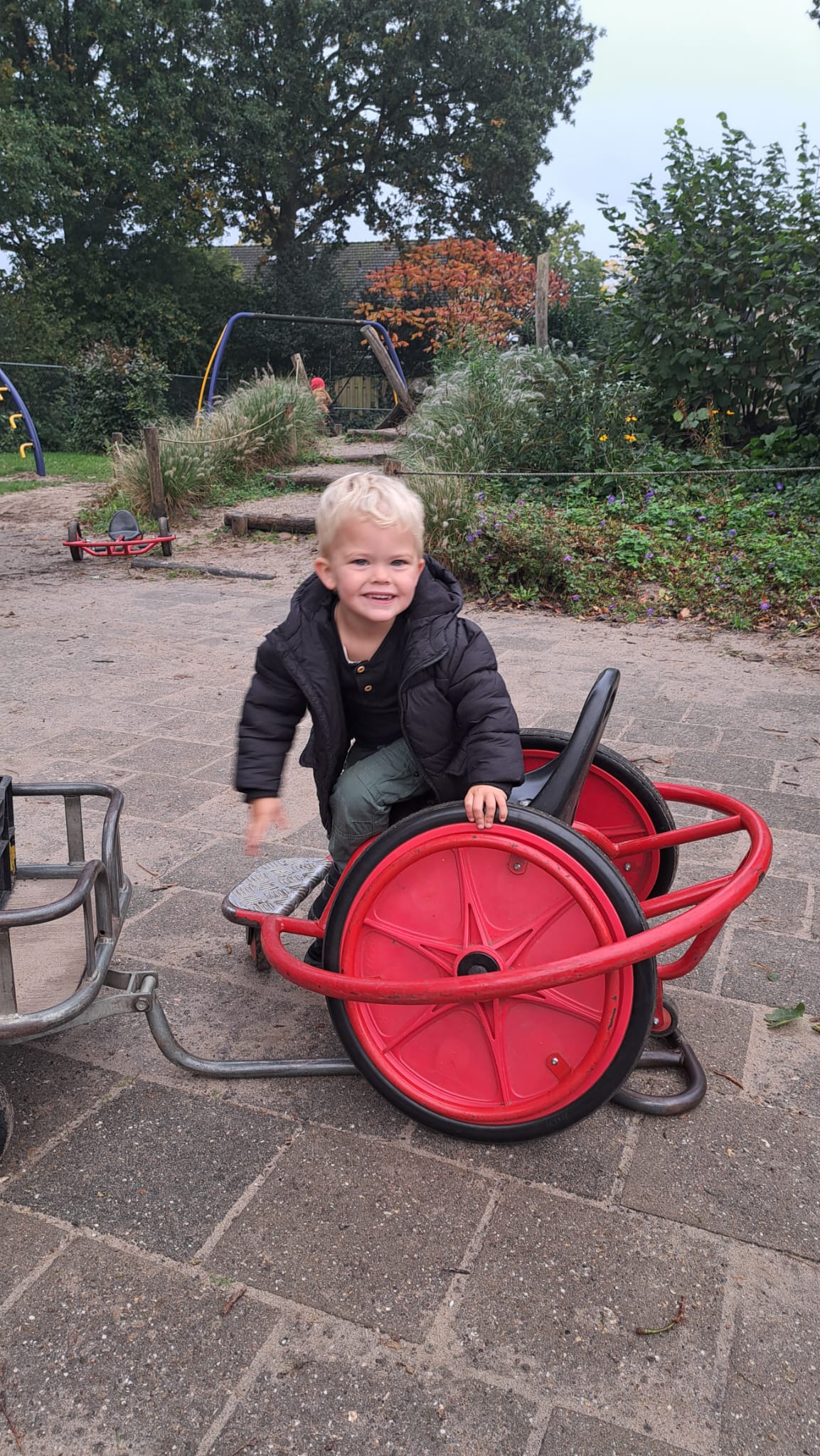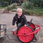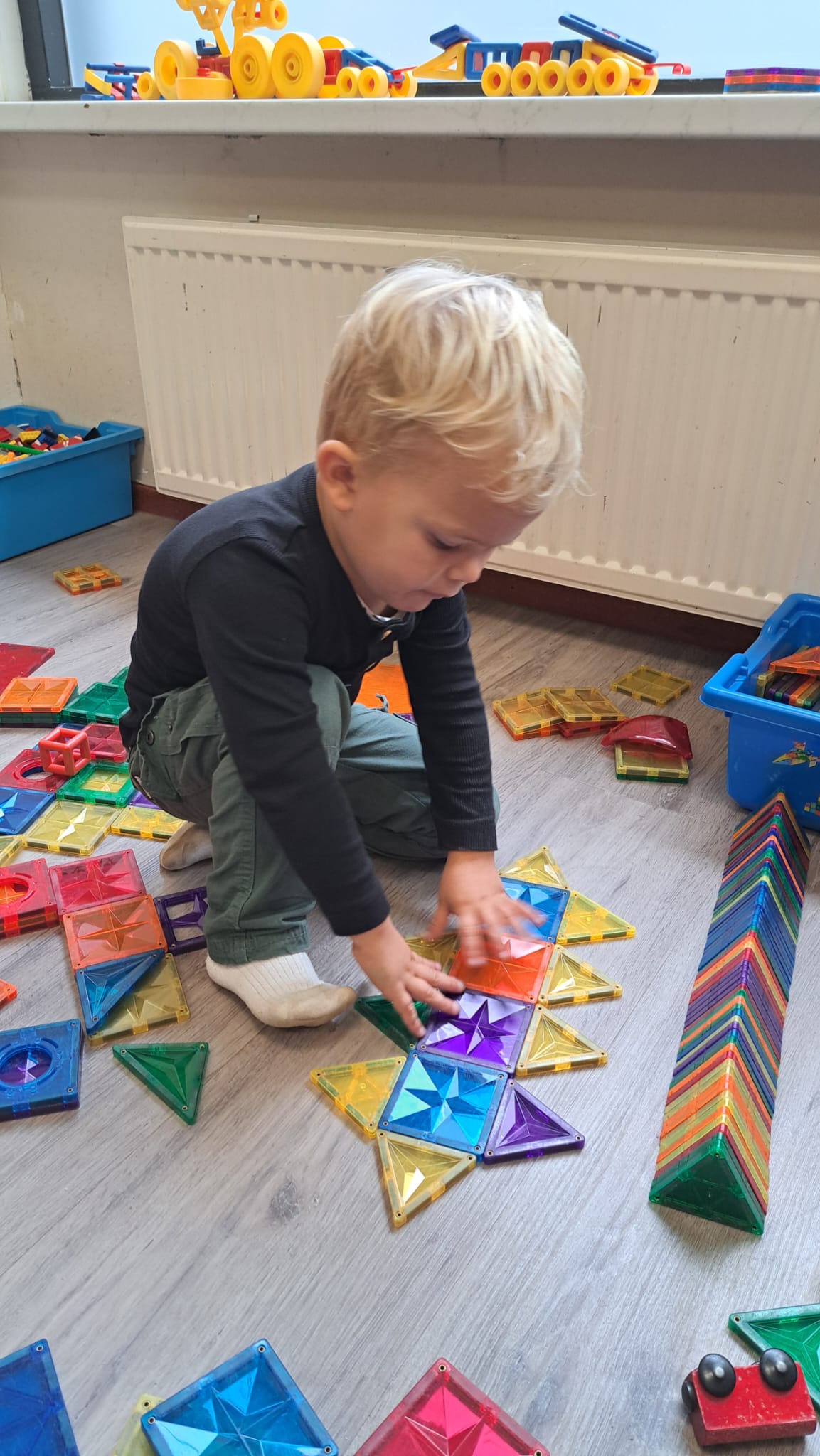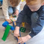 De kinderen mogen met de grote auto spelen en ook hebben we in de bouwhoek een bak met auto’s en losse wegdelen neergelegd. De kinderen kunnen daar bijvoorbeeld spelen dat ze een echte weg maken en auto’s besturen.