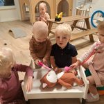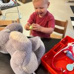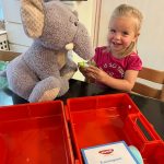De kinderen zijn druk aan het ontdekken, wat voor materiaal het is en hoe het gebruikt kan worden. De stethoscoop, de spuitjes, de pleisters en het verband is bij de kinderen favoriet. De groepsknuffels Ollie de Olifant van de Kwick-groep en Felix de Vos van de Kidz-groep worden ook bij dit thema betrokken. Ze zijn allebei ziek en wij gaan ze weer beter maken. Aan het einde van dit thema krijgt ieder kind een doktersdiploma. En we zien nu al hele goede dokters.