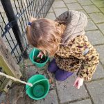 We gaan het daarom veel hebben over wat is een verrassing en picknicken. De ouders hebben we gevraagd om een picknickmand en -kleed waarmee de peuters rollenspel kunnen spelen. Daar is gehoor aan gegeven en er zat zelfs iets lekkers in die picknickmand. Dus hebben we al meerdere dagen met z’n allen, midden in de groep, op een kleed gezeten en gegeten. Ook in de winter kun je picknicken, gewoon binnen. En de peuters gaan dit nu zelf na spelen vanuit de huishoek.