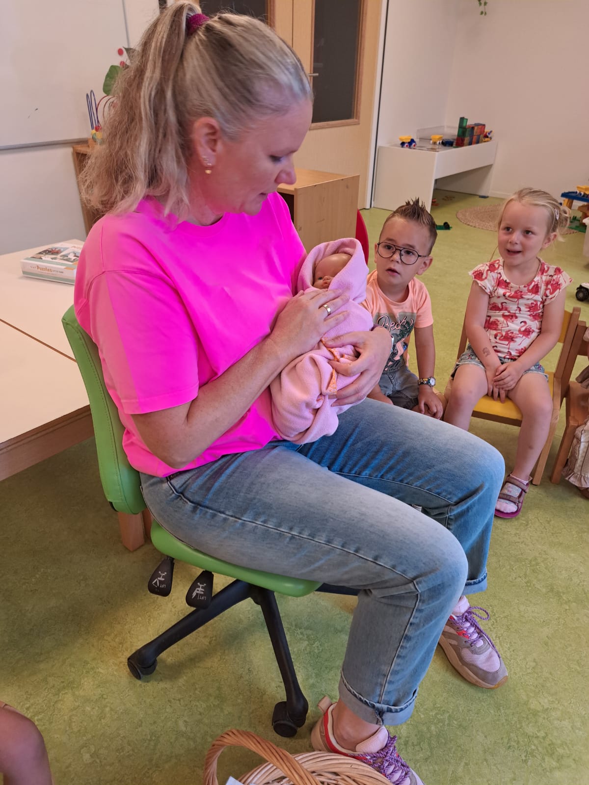 We hebben een verzorgingshoek ingericht hier kunnen de kinderen net als in het echt een baby verzorgen!
