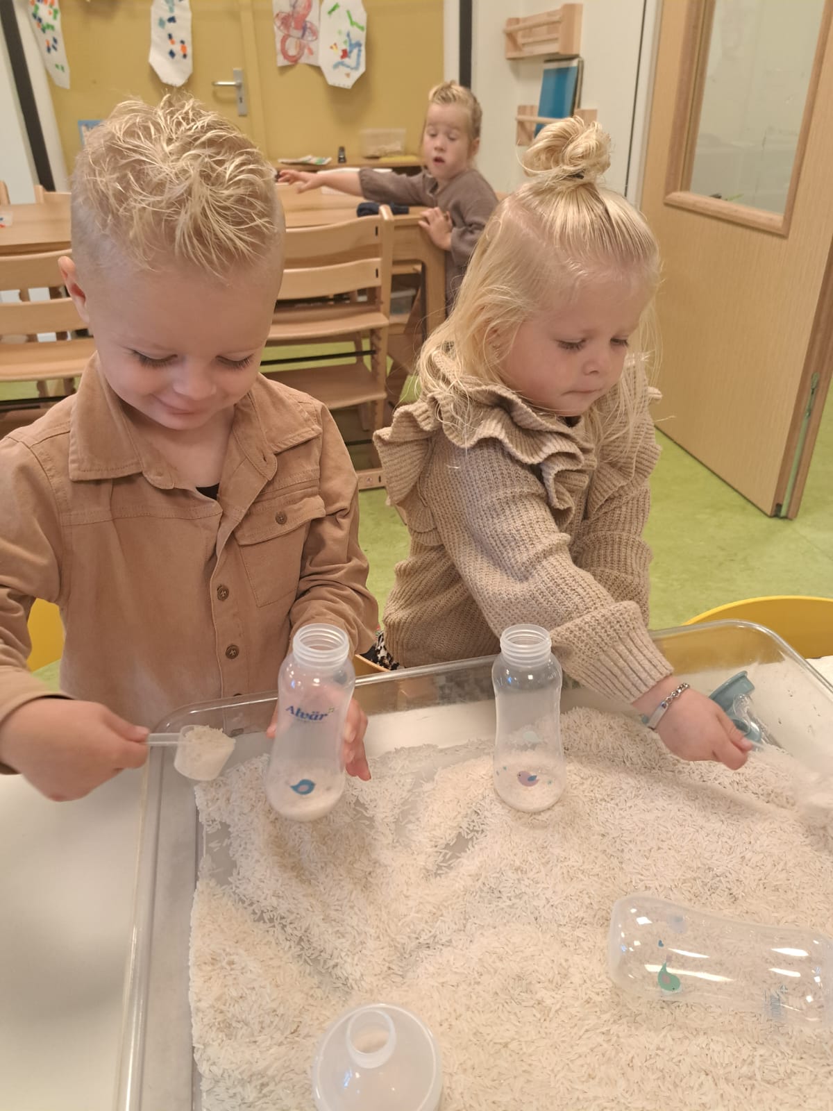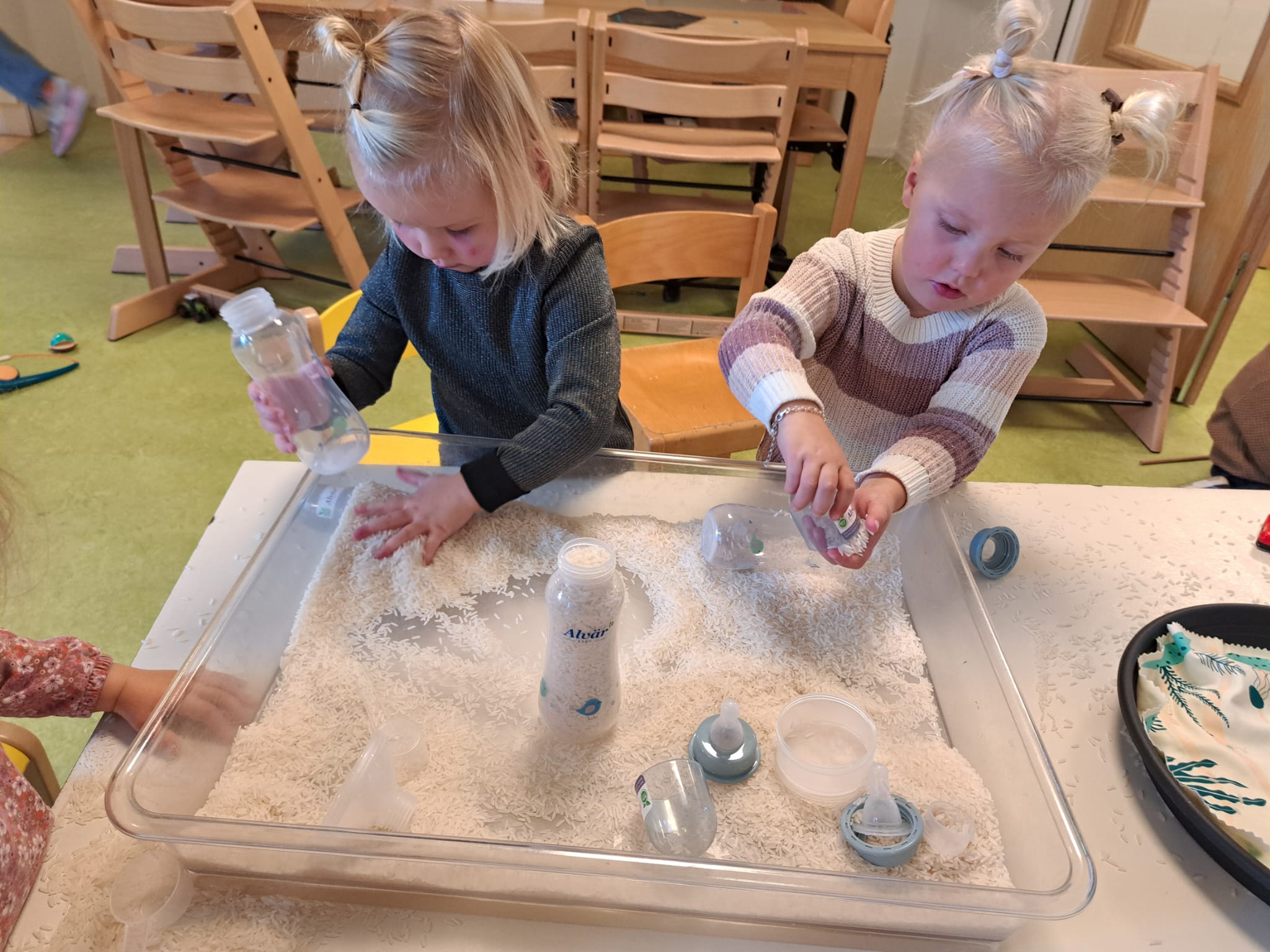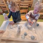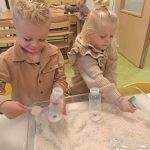 Er worden elke dag echte fruithapjes gemaakt en lekker geproefd. Er wordt liga en baby chips geproefd en aan gesabbeld. Ook hebben we de liga en chips in een bakje water gedaan om te zien wat er nou eigenlijk gebeurt als je erop sabbelt, zo zien we waarom baby’s dat kunnen eten.