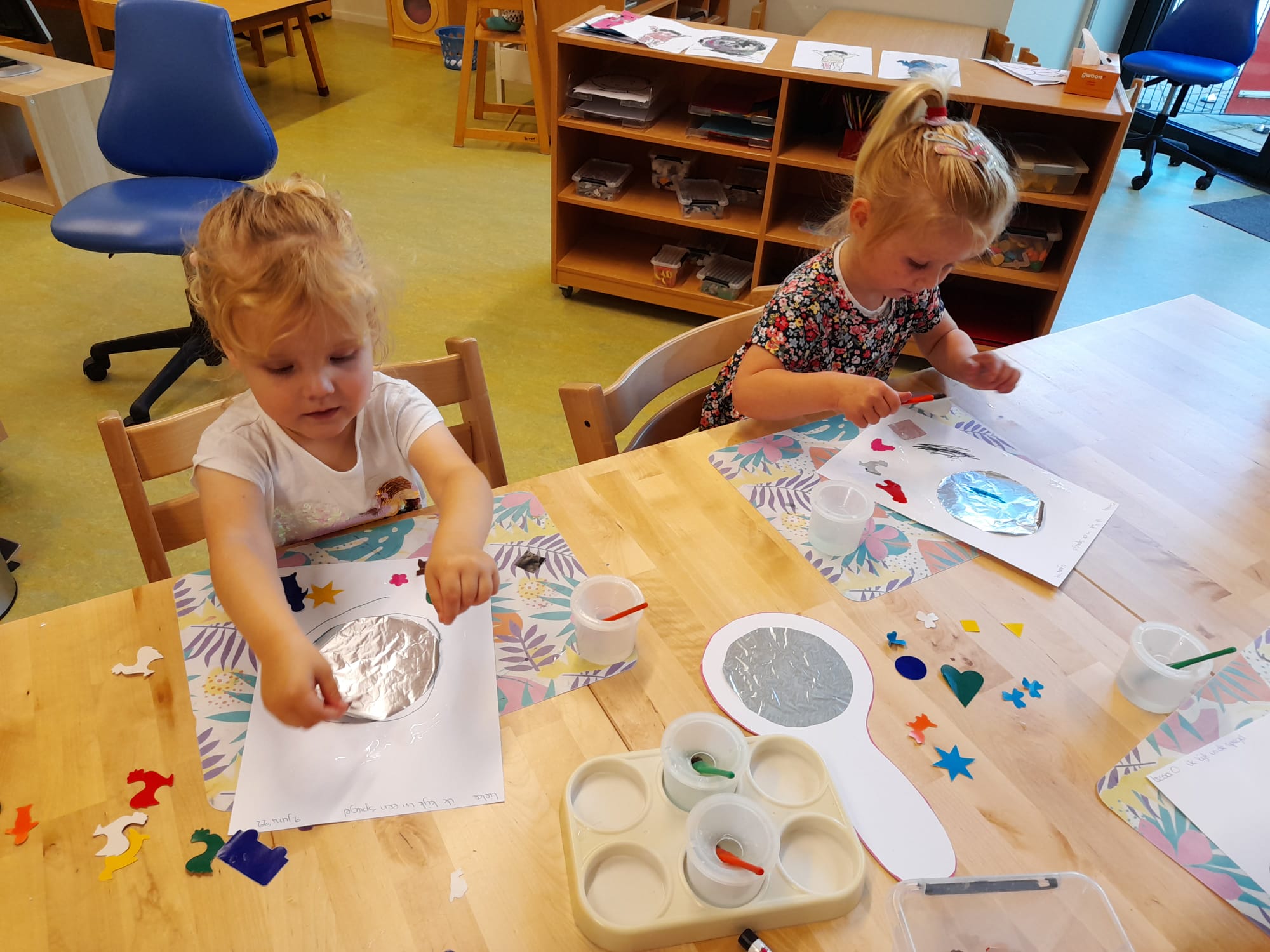 We zijn bij peuteropvang de Buurtkabouters bezig met het thema ‘Jij en ik”. Hierbij gaat het over je lichaam, hoe je er uitziet, hoe de ander er uitziet en wat de verschillen zijn. De platen van het woordenschatprogramma Logo3000 zoeken we zo uit, dat ze aansluiten bij waar we op het moment mee bezig zijn. Zo ook de plaat met alle lichaamsdelen en het gezicht. We leren een opzegversje terwijl we onze lichaamsdelen aanwijzen. En we kijken in de spiegel naar ons zelf. De peuters knutselen hun eigen spiegel. Met stift mogen ze deze “tekenen”, folie erop plakken en daarna met plakfiguurtjes versieren. Wat worden ze mooi.