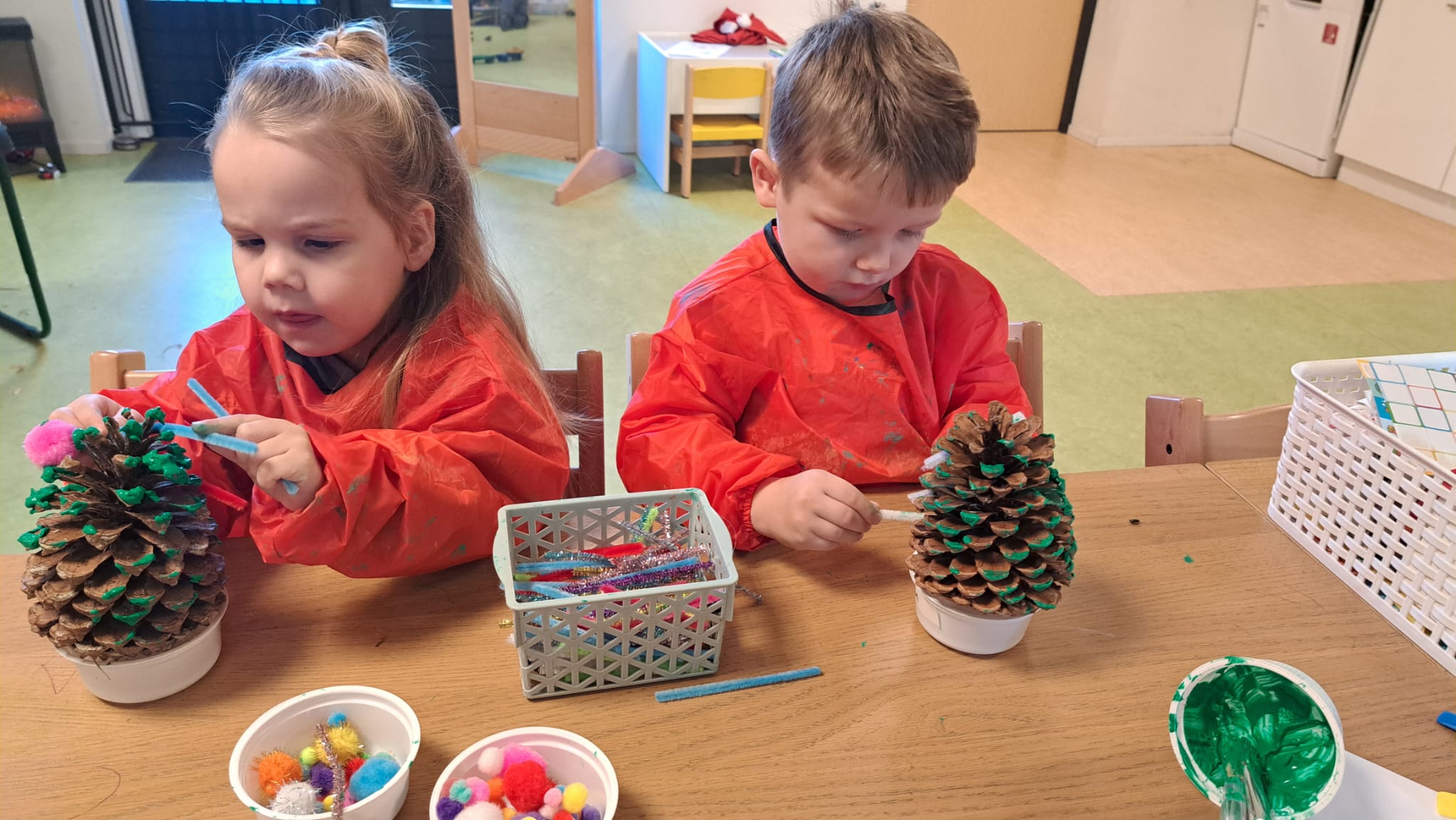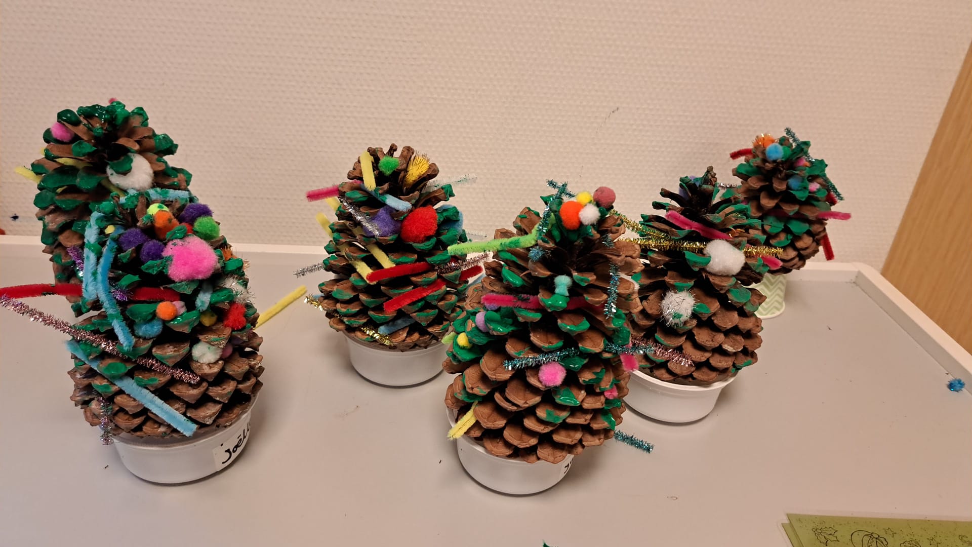 Deze weken staat in teken van kerst bij peuteropvang ’t Muizenholletje. Er worden mooie kerstboompjes gemaakt van dennenappels.
