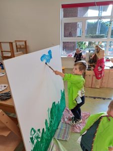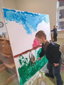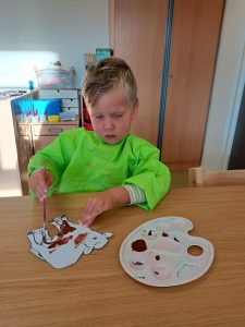 En daar dragen wij natuurlijk ook ons steentje aan bij. Ieder jaar maken we met de peuters een groot wandbord die dan tijdens het Koefeest in Oene in het Kulturhus komt te hangen zodat iedereen die naar het Koefeest komt, het kan bewonderen.
