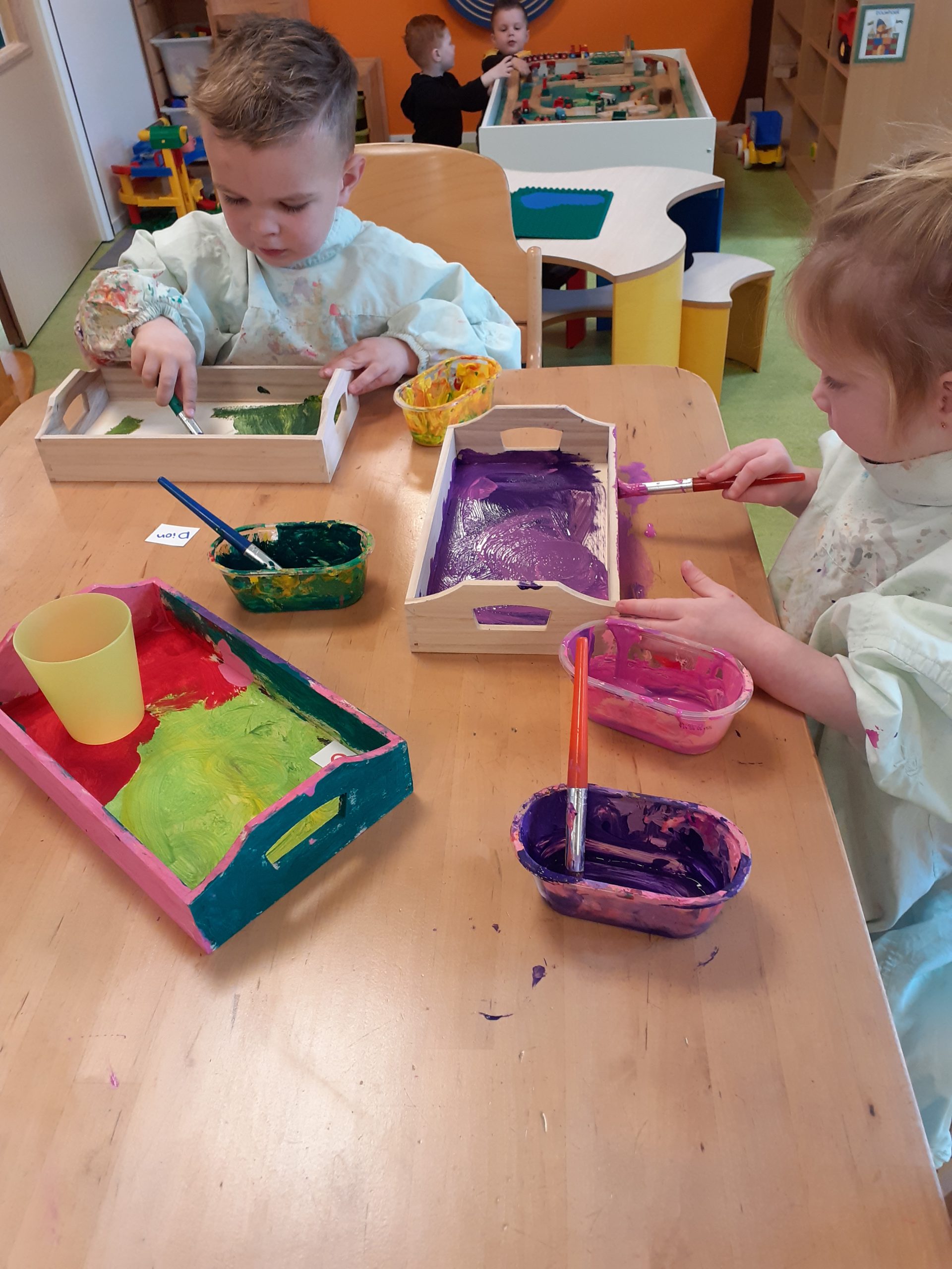 De peuters van ’t Muizenholletje hebben weer een prachtig Moederdag cadeau gemaakt. Er is een dienblad geverfd. Zelf de kleur uitzoeken en dan lekker met de kwasten aan de gang!