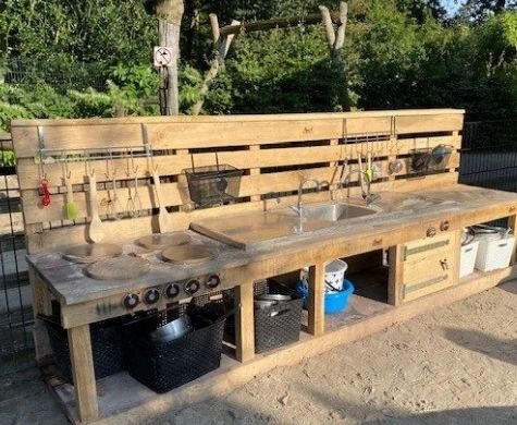 Bij BSO Kiddo’s hebben we een nieuwe buitenkeuken. Lekker ontdekken met water met en zand, dunne blubbermodder of dikke modder. Van alles is wat te maken!