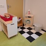 We hebben ook een nieuwe wasmachine gekregen waar de kinderen kleren kunnen wassen en vervolgens strijken en opvouwen. In de poppenhoek een nieuwe poppencommode waar de kinderen de babypop kunnen verzorgen. Wat staat het mooi en wat zijn wij er blij mee.
