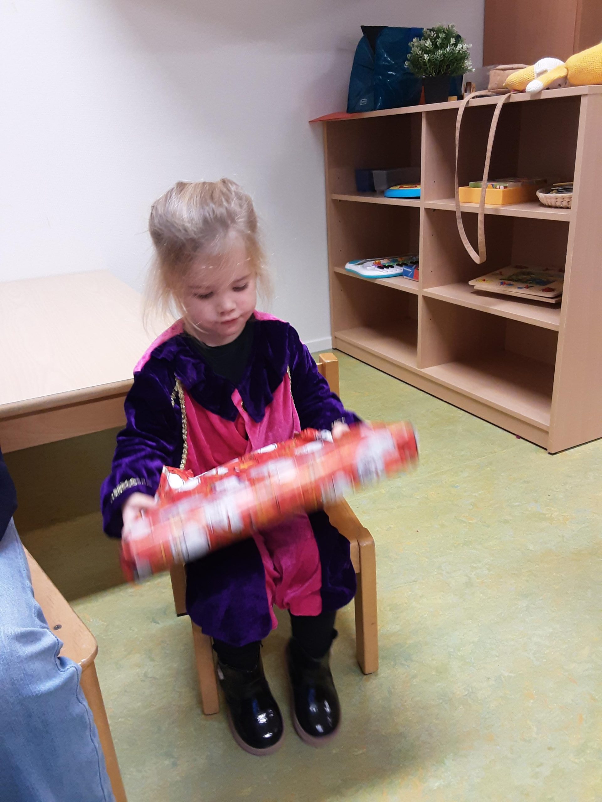 Bij terugkomst in het lokaal was er een grote verrassing want Sint had er een grote pietenzak neergelegd vol met cadeaus voor de peuters en ook voor op de groep om samen mee te spelen. Er kan weer terug gekeken worden op een geslaagd feest.