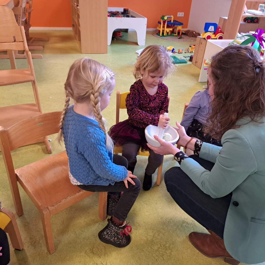 Bij ‘t Muizenholletje is een medewerker van de apotheek op bezoek geweest om de kinderen dingen te vertellen en laten zien over haar beroep.