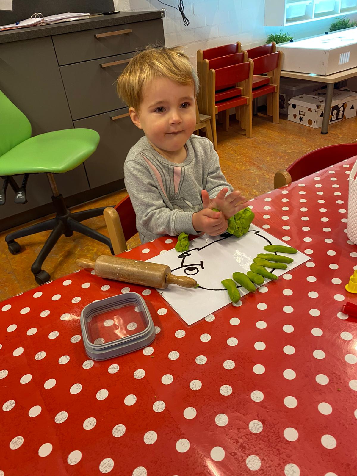 Er zijn egels gemaakt van klei met stekeltjes op de rug. Daarna zijn we verder gegaan met de spin. Het begrip tellen kwam hier aan bod. Hoeveel poten tellen we?