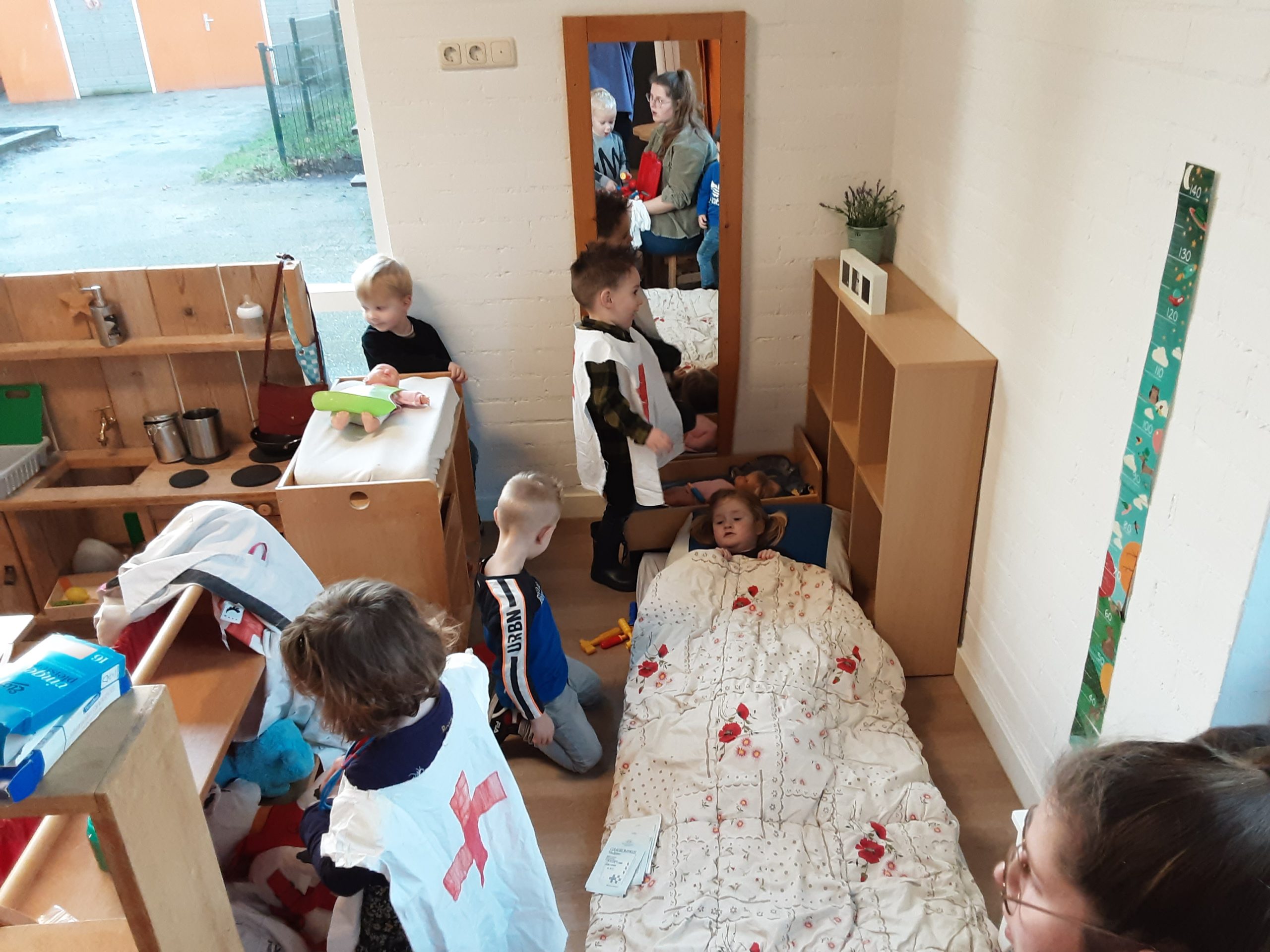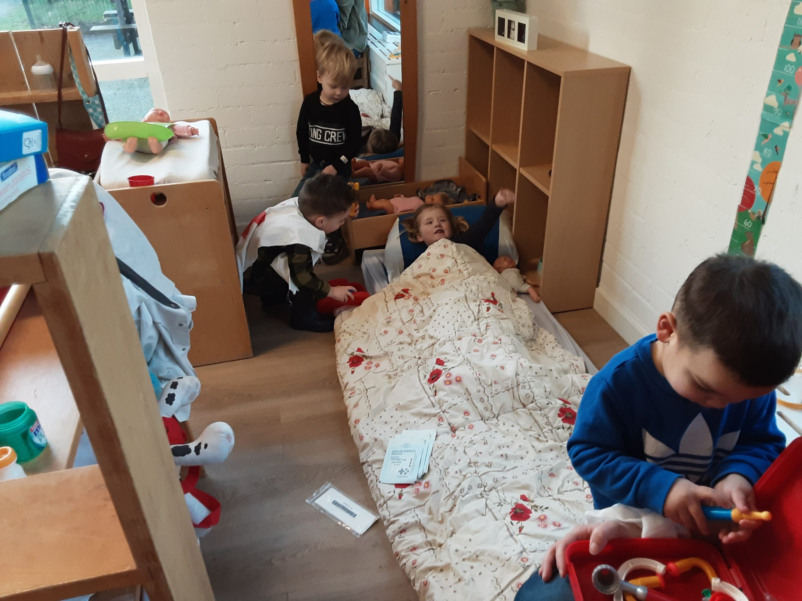 Op ’t Heggeholletje zijn we deze weken bezig met het thema ‘Ik ga naar de dokter’. De knuffels en poppen worden onderzocht door de dokter en krijgen een pleister, verband of een prikje.