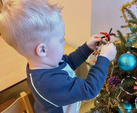 De groep van de Buurtkabouters is door de kinderen in kerstsfeer gebracht. Samen de kerstboom versieren. Met slingers, ballen en ook een zelfgemaakte kerstbal. Door strijkkralen te rijgen aan een chenille draad is het een kleurige versiering geworden. Natuurlijk mochten de kinderen deze ook in de boom ophangen.