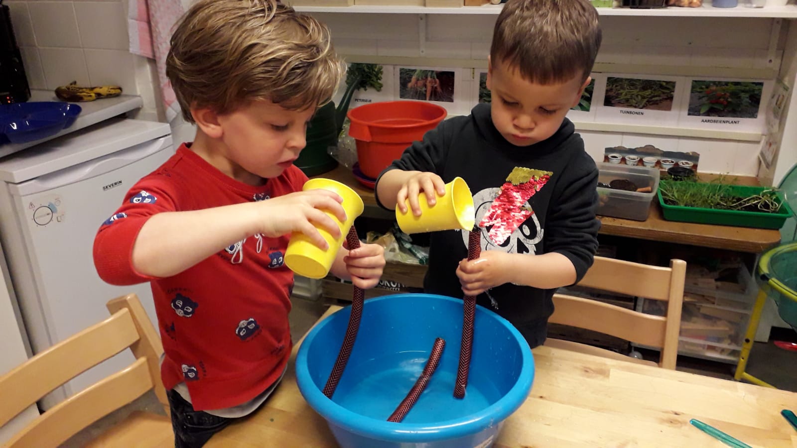 Bij ’t Heggeholletje werken we momenteel met het thema: ‘Aarde, water en zand’. We nemen de peuters mee op ontdekkingstocht naar de ongevormde materialen. Voelen, onderzoeken en experimenteren met deze natuurlijke materialen staat garant voor veel plezier! De kinderen kunnen deze materialen ook kapot maken zonder consequenties. Dat is belangrijk voor de sociaal-emotionele ontwikkeling en de grove en fijne motoriek.
