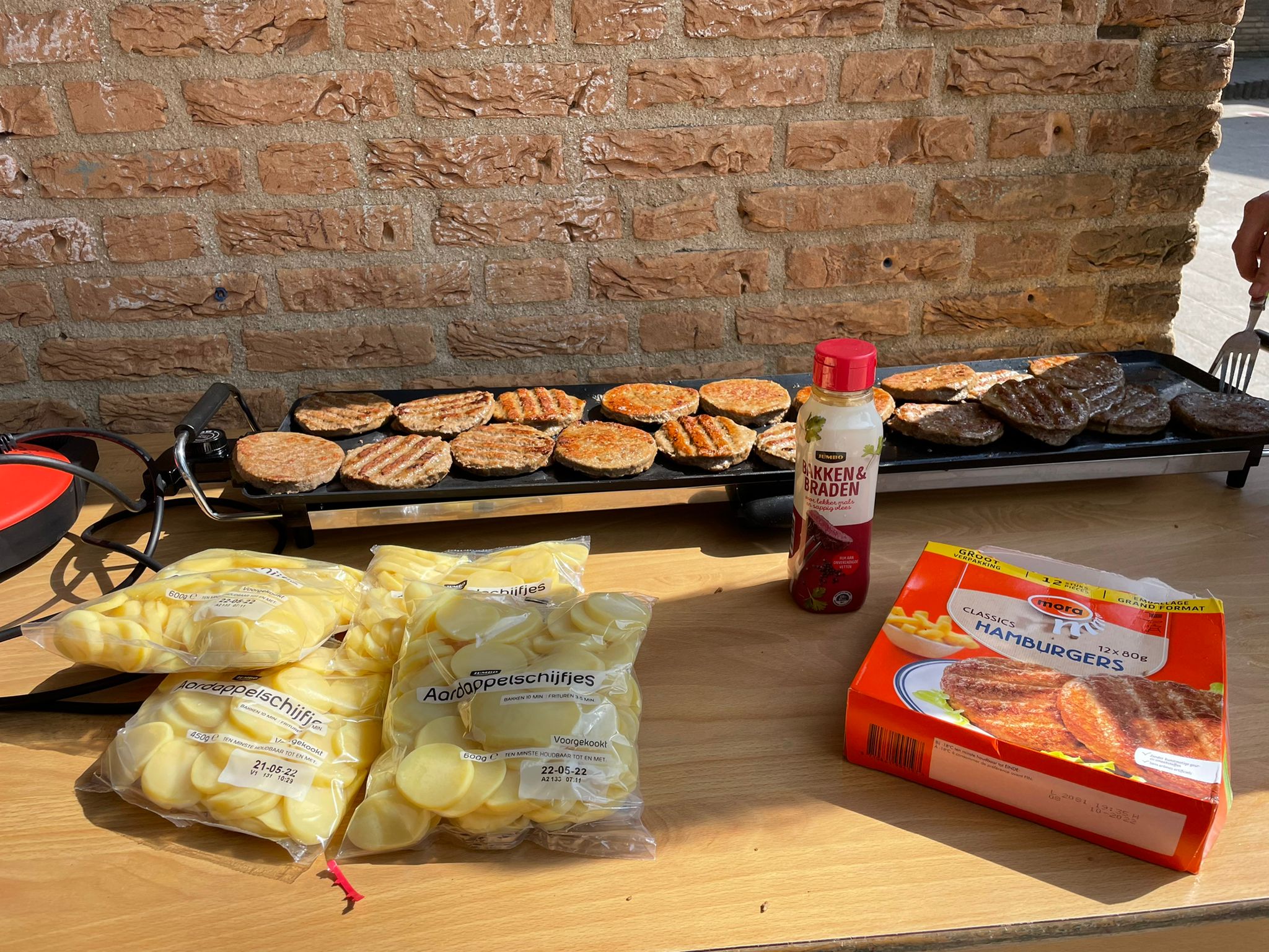 Wij hebben op dinsdag, donderdag en vrijdag met iedereen die wilde samen gegeten, dit omdat dat gezellig is en zodat iedereen met een volle buik de avondvierdaagse kon lopen. Op dinsdag aten wij gebakken aardappels, hamburgers en doppertjes en worteltjes. Op donderdag stonden er diverse wraps op het menu en op vrijdag was er zelfgemaakte pizza.