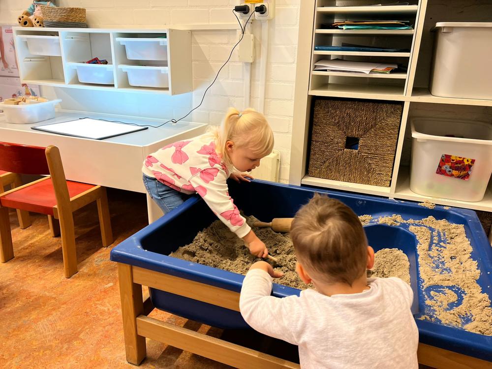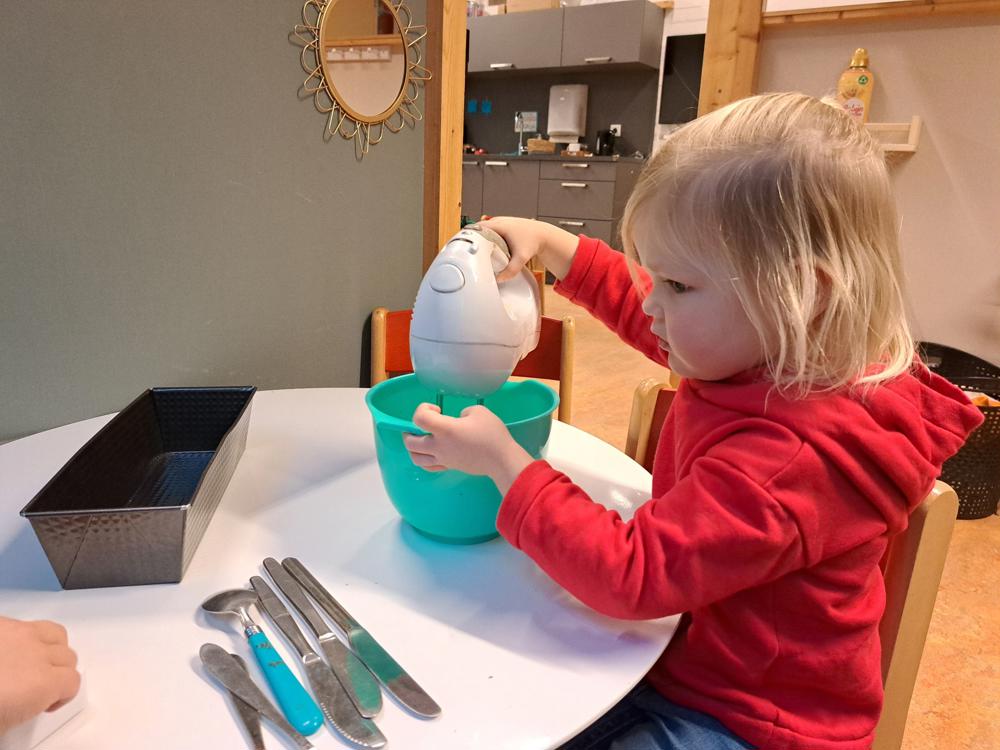 De peuters van Kiddo’s zijn de afgelopen weken druk bezig geweest met het thema ‘Wij zijn bakkers’. Om het thema te introduceren bespreken wij tijdens de ochtendkring wat er allemaal in het schattenmandje zit. Hier zitten allemaal bakkerspullen in. Zo was er een beslagkom, mixer, garde en een kookwekker. Daarna hebben de peuters met deze spullen in de huishoek gespeeld. Ook staat de zandtafel op de groep. Hier worden heerlijke zandtaartjes gemaakt.