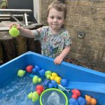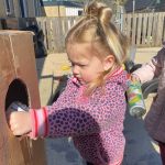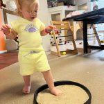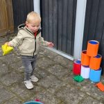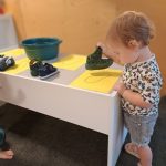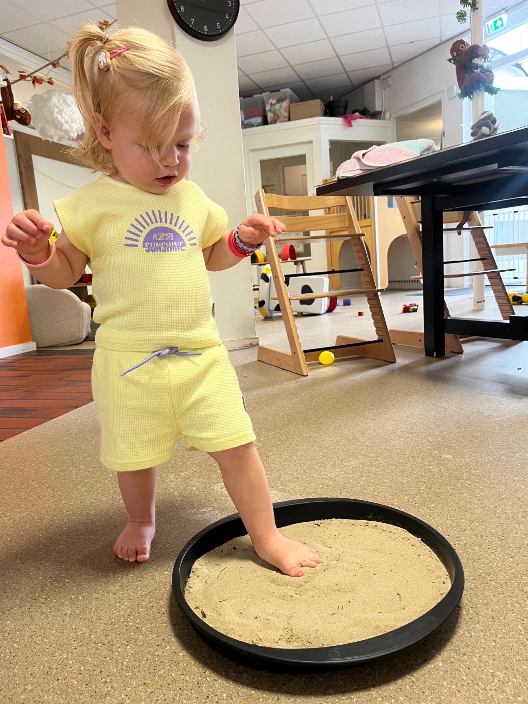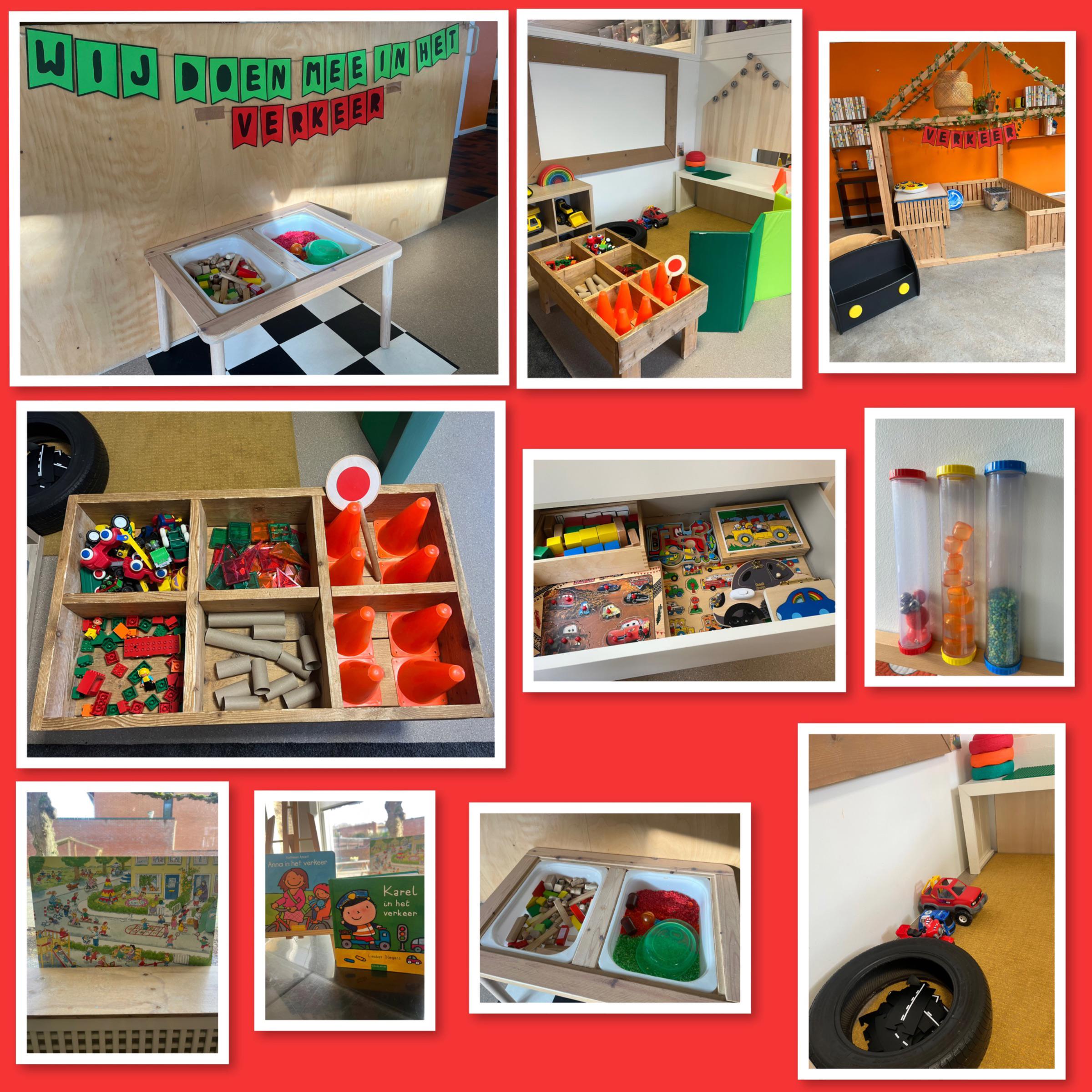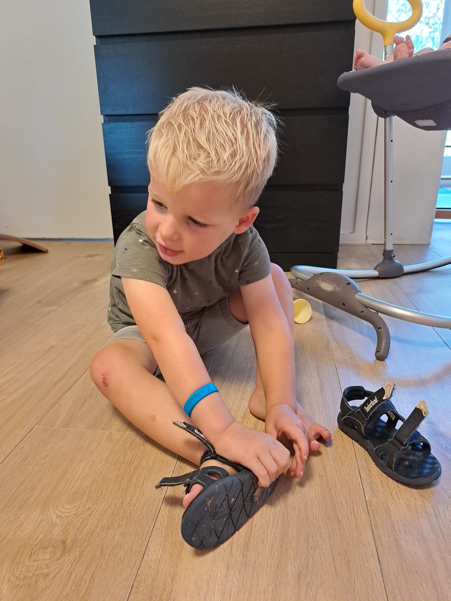 Tijdens dit thema werd er voorgelezen uit het boekje aankleden met Fien en Milo. Fien probeert zichzelf aan te kleden maar weet niet waar ze moet beginnen. Milo helpt haar om in de juiste volgorde de kledingstukken aan te trekken. Na het lezen, is het tijd voor de kinderen om te oefenen. Eerst starten wij met de schoenen. De hele week wordt er gekeken naar de verschillende schoenen en proberen de kinderen deze zelf aan toen doen. Eerst kijken welke schoen aan welke voet moet en dan proberen maar. De oudere kinderen lukte het al heel goed zelf waardoor ze de jongste kinderen goed konden helpen. Ook ontdekte wij dat elke schoen een andere voetafdruk heeft. Je liep eerst door een bak met zand en bekeek daarna wat voor afdruk er in het zand was ontstaan.
