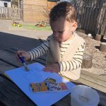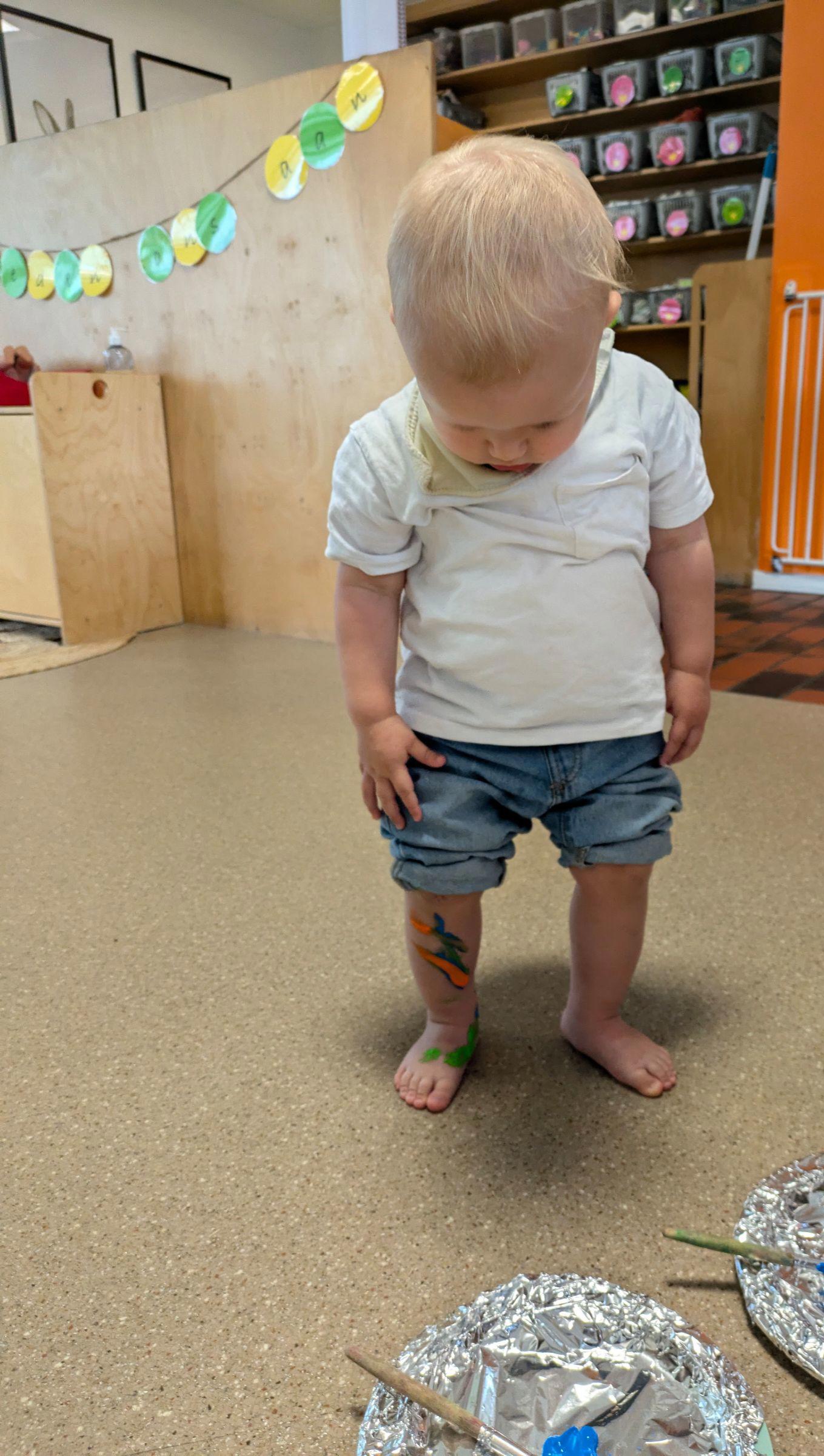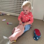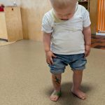 Na de schoenen werd er druk geoefend met je eigen sokken aandoen. Hé,dit lijkt wel een beetje op je schoenen aan doen! Tijdens deze week werd er druk geknutseld aan happy Socks, maar dit deden wij niet op papier maar onze eigen voeten werden versierd met verf. Verder werd er nog druk geoefend met het aandoen van onze broek en jas.
