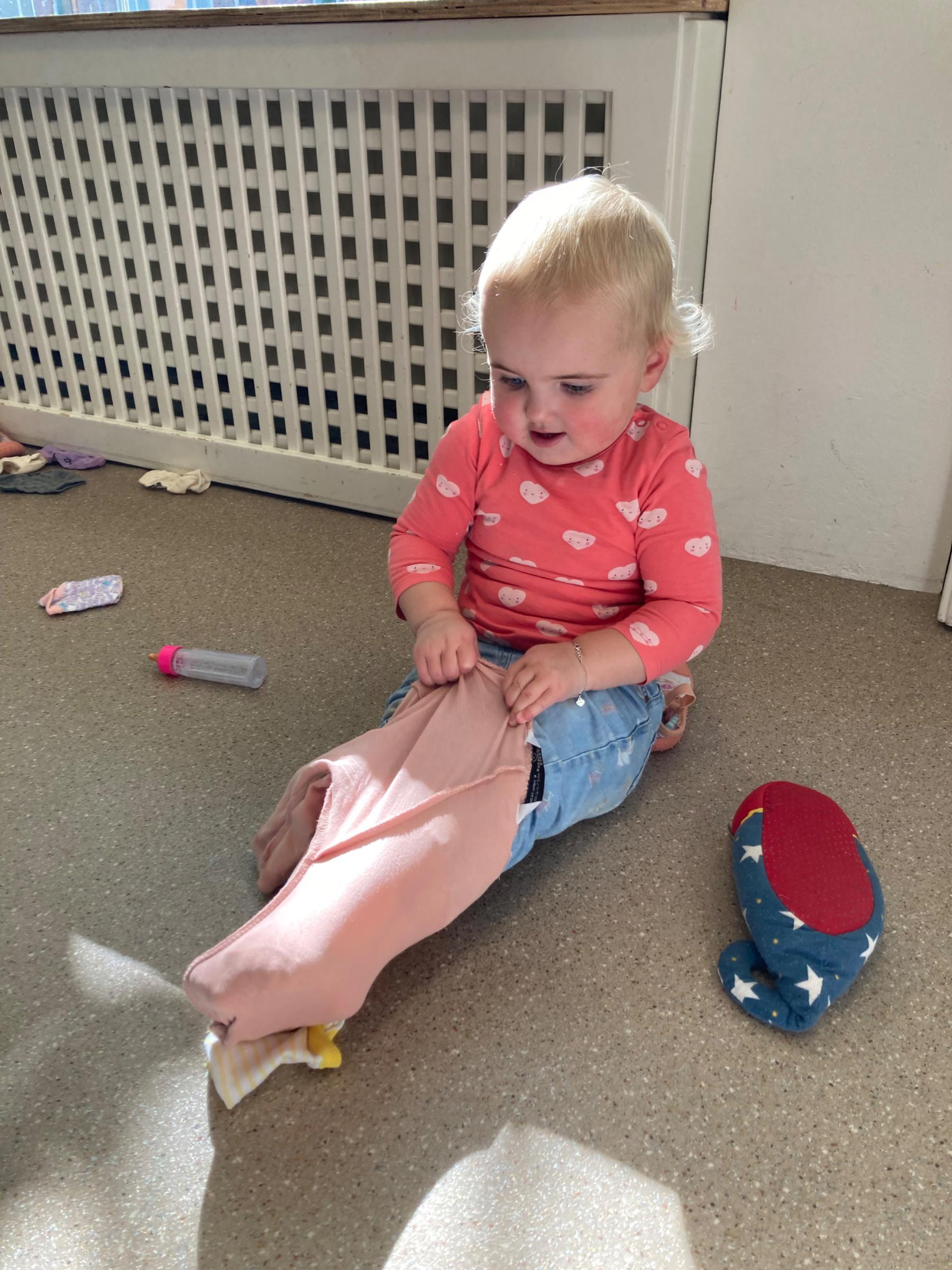 Afgelopen weken stond het thema: “Wij kleden ons aan” centraal op de Kwick en Kidz groep. Elke week werd er een kledingstuk bekeken en besproken. Tijdens het thema stonden de broek, schoenen, jas, t-shirt, sokken en onderbroek centraal.