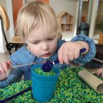 Ook wordt er heel veel met natuurlijke producten en ander kosteloos materiaal gespeeld. Bouwen met closetrollen, stokjes en planken. Knutselen met bekertjes, bladeren of kastanjes, het kan alles zijn. “We kijken ook veel meer waar de kinderen zelf om vragen. Het ritme en het verloop van de dag is daardoor dus ook altijd anders. Dit doen we verder omdat kinderen met ongevormde en kosteloze materialen hun eigen creativiteit kwijt kunnen in plaats van bij voorgeprogrammeerd speelgoed bijvoorbeeld.”