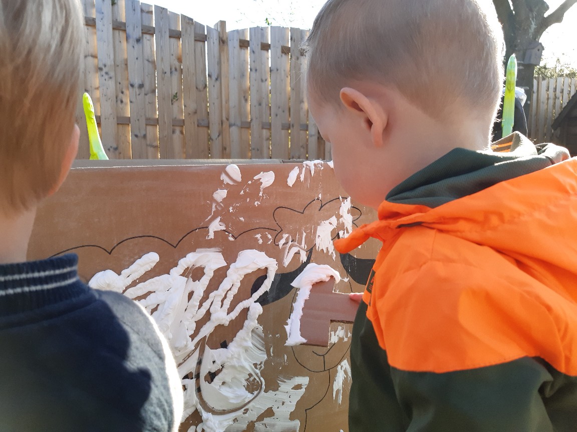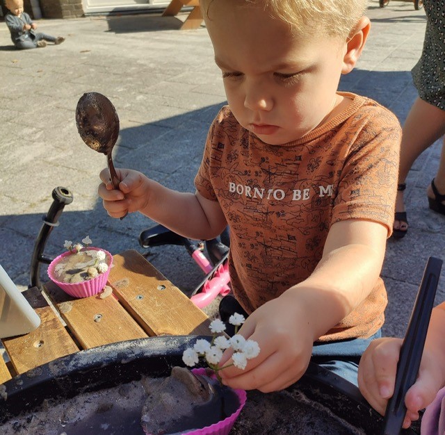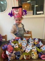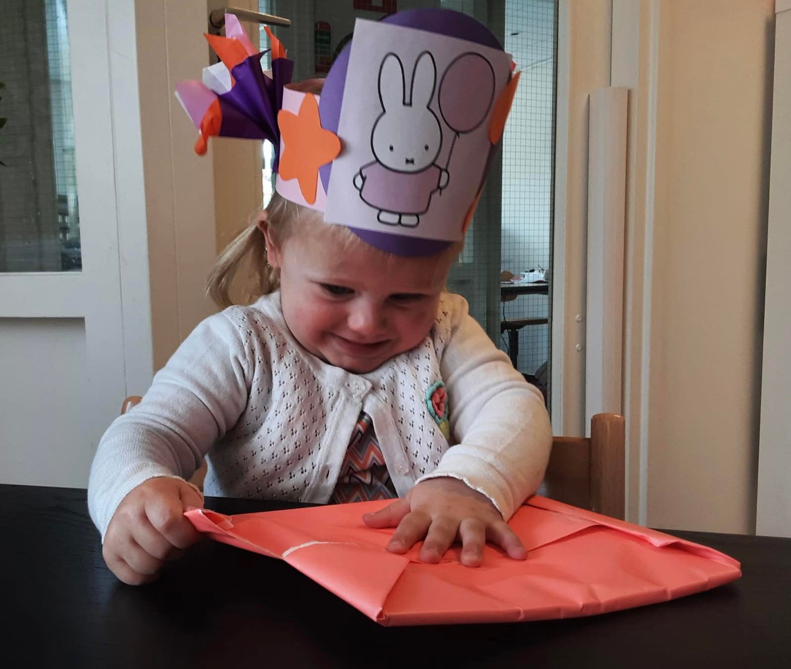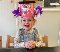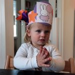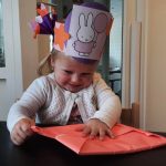 Ook wordt er een mooie feestmuts voor de kinderen gemaakt. De feestmuts maken we aan de hand van interesses van de kinderen, wat speelt er op dat moment in de belevingswereld van de kinderen af. Ook vragen we regelmatig, afhankelijk van de leeftijd, de kinderen zelf wat ze op hun feestmuts willen hebben. Zodat we de kinderen de ruimte geven om hun eigen ideeën in te brengen.
