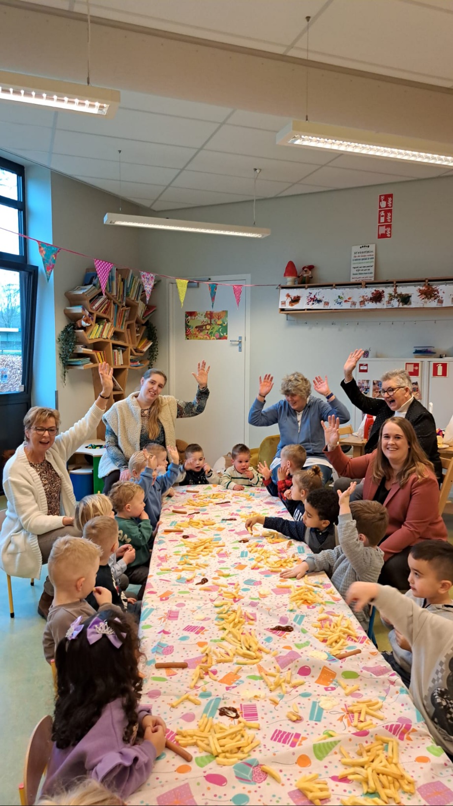 We zijn nu gestart met het thema “Wij maken muziek”. Zingen, dansen en muziek maken spreekt enorm aan. Daarom mogen de peuters zelf aan de slag. Onze bouwhoek is nu de muziekhoek, met een heus podium, muziekinstrumenten en microfoons. De kinderen hebben al gauw de smaak te pakken. Met veel tegelijk staan ze op het podium, microfoons in de hand en verschillend instrumenten. Ze zingen, spelen en dansen wat af op het podium.