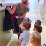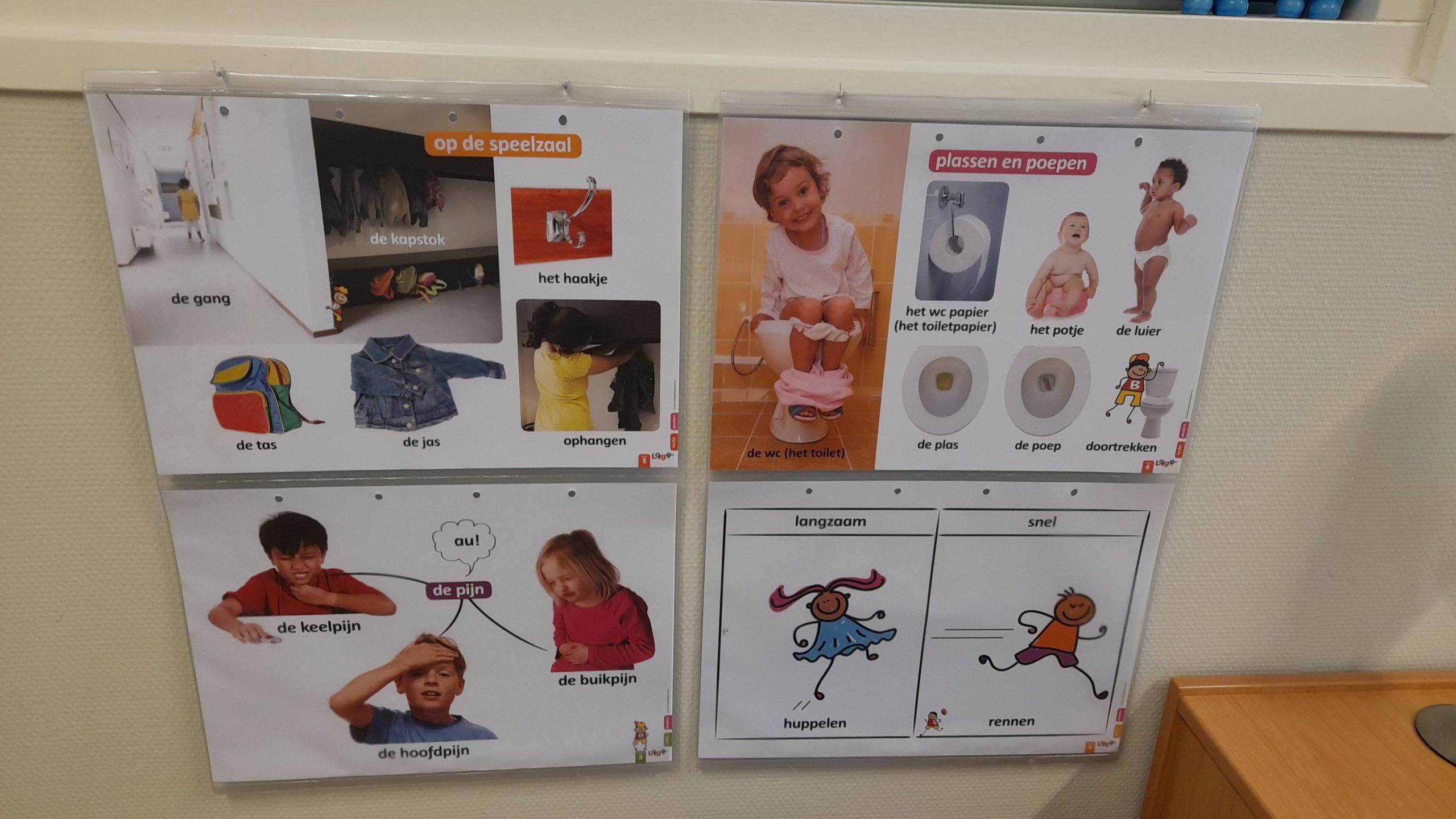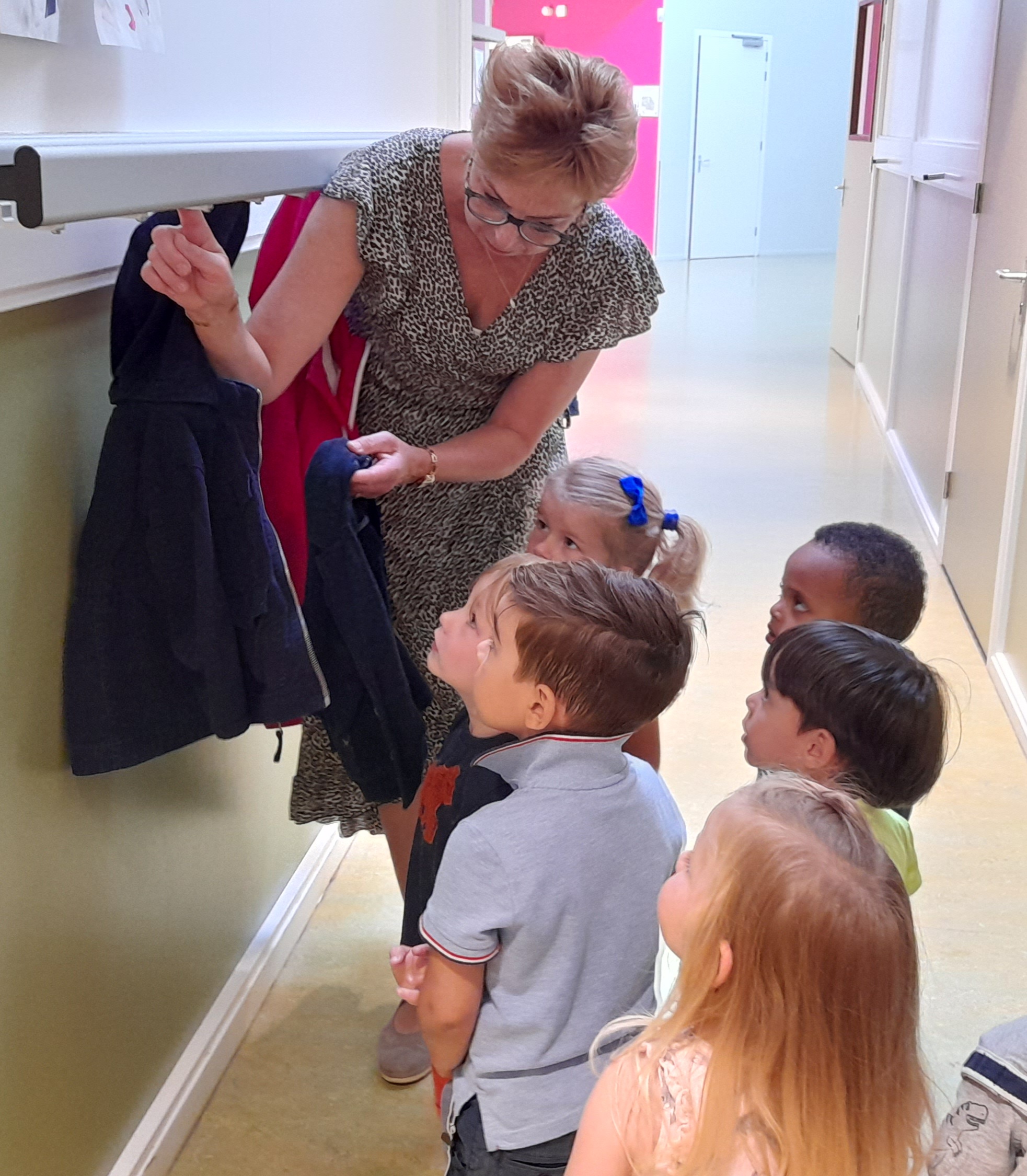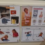 We pakken na de vakantie ons ritme weer op en elke ochtend in de eerste kring laten we een praatplaat of clusterplaat zien, van ons Woordenschatprogramma Logo3000. Bijvoorbeeld de plaat over je jas ophangen aan het haakje aan de kapstok in de gang. Op de plaat staan duidelijke foto’s met het woord erbij, die we bekijken en benoemen. Dan gaan we allemaal mee naar de gang, bekijken we onze eigen kapstok, kijken waar het haakje zit en hangen een jas op. Zo leren de kinderen spelenderwijs (nieuwe) woorden aan door deze gelijk te gebruiken, begrijpen ze meer wat er bedoeld wordt en slaan ze de woorden beter op.