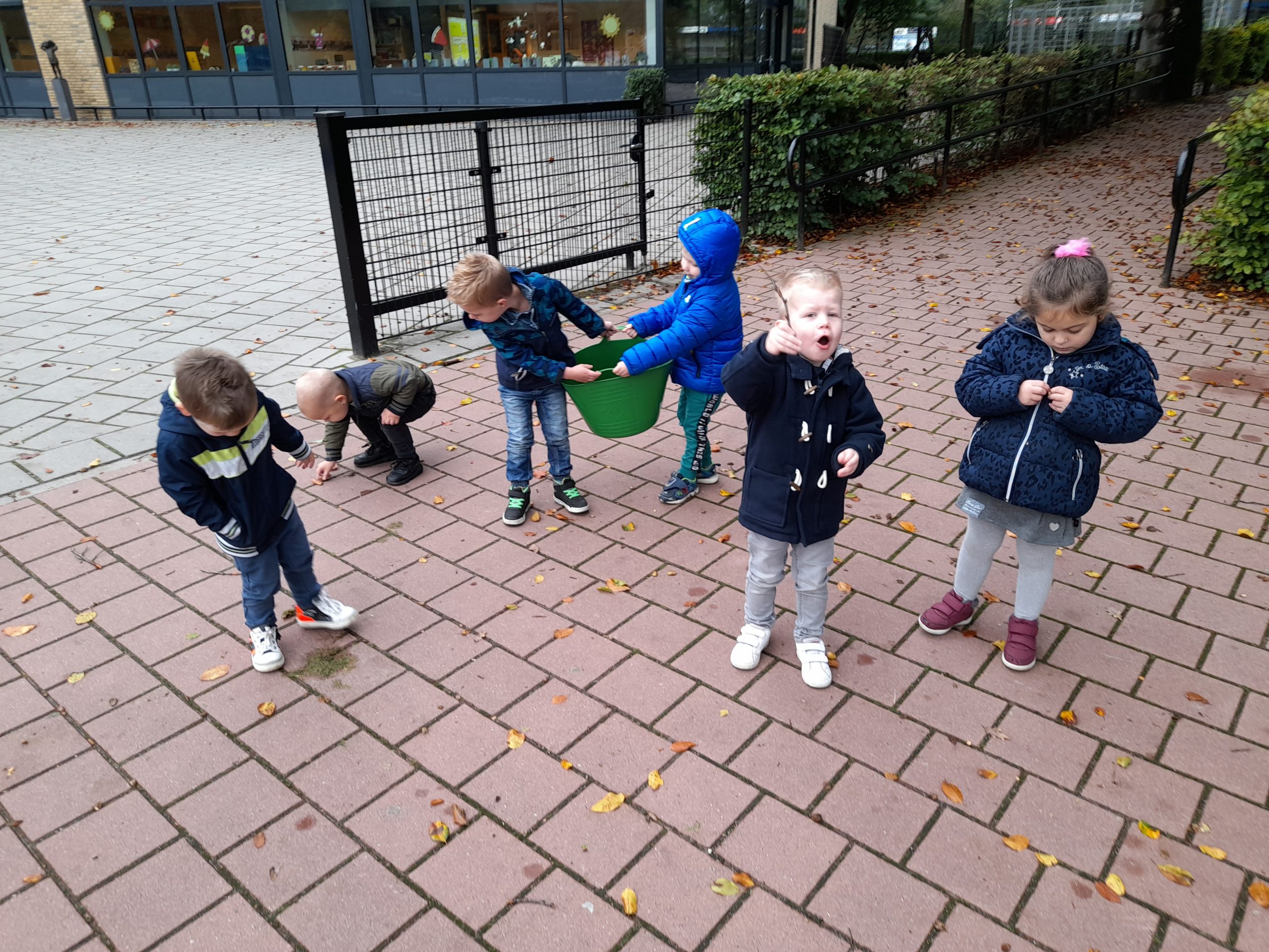 Het is volop herfst en de peuters van peuteropvang/peuterspeelzaal de Buurtkabouters hebben een herfstwandeling gemaakt. Een grote mand werd meegenomen en alles wat ze onderweg tegenkwamen, mocht erin. Vol enthousiasme werd er onder bomen, tussen struiken en op de stoep gezocht en steeds werden de vondsten in de mand gestopt.