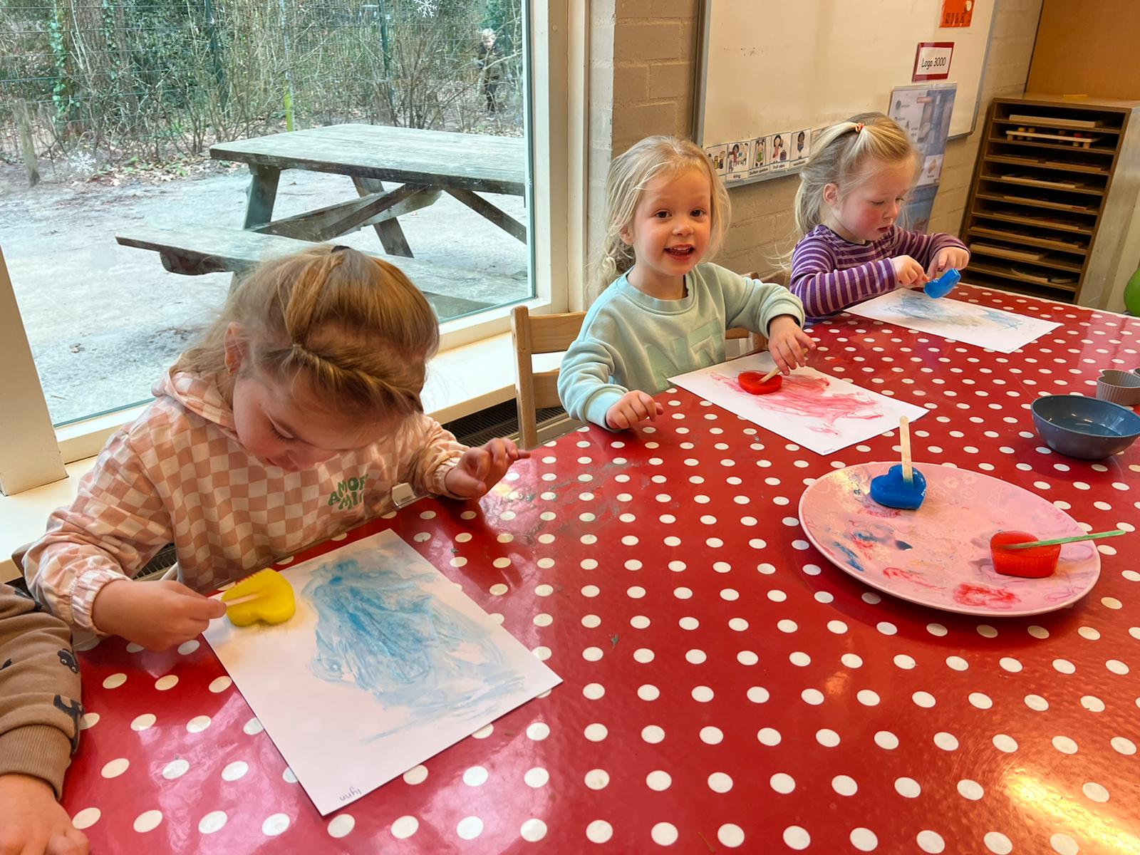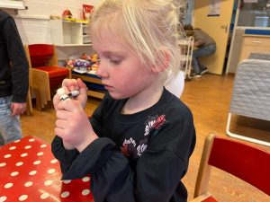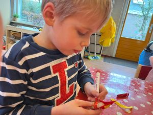 Ook wordt er heel veel met natuurlijke producten en ander kosteloos materiaal gespeeld. Bouwen met closetrollen, stokjes en planken. Knutselen met bekertjes, bladeren of kastanjes, het kan alles zijn. “We kijken ook veel meer waar de kinderen zelf om vragen. Het ritme en het verloop van de dag is daardoor dus ook altijd anders. Dit doen we verder omdat kinderen met ongevormde en kosteloze materialen hun eigen creativiteit kwijt kunnen in plaats van bij voorgeprogrammeerd speelgoed bijvoorbeeld.”