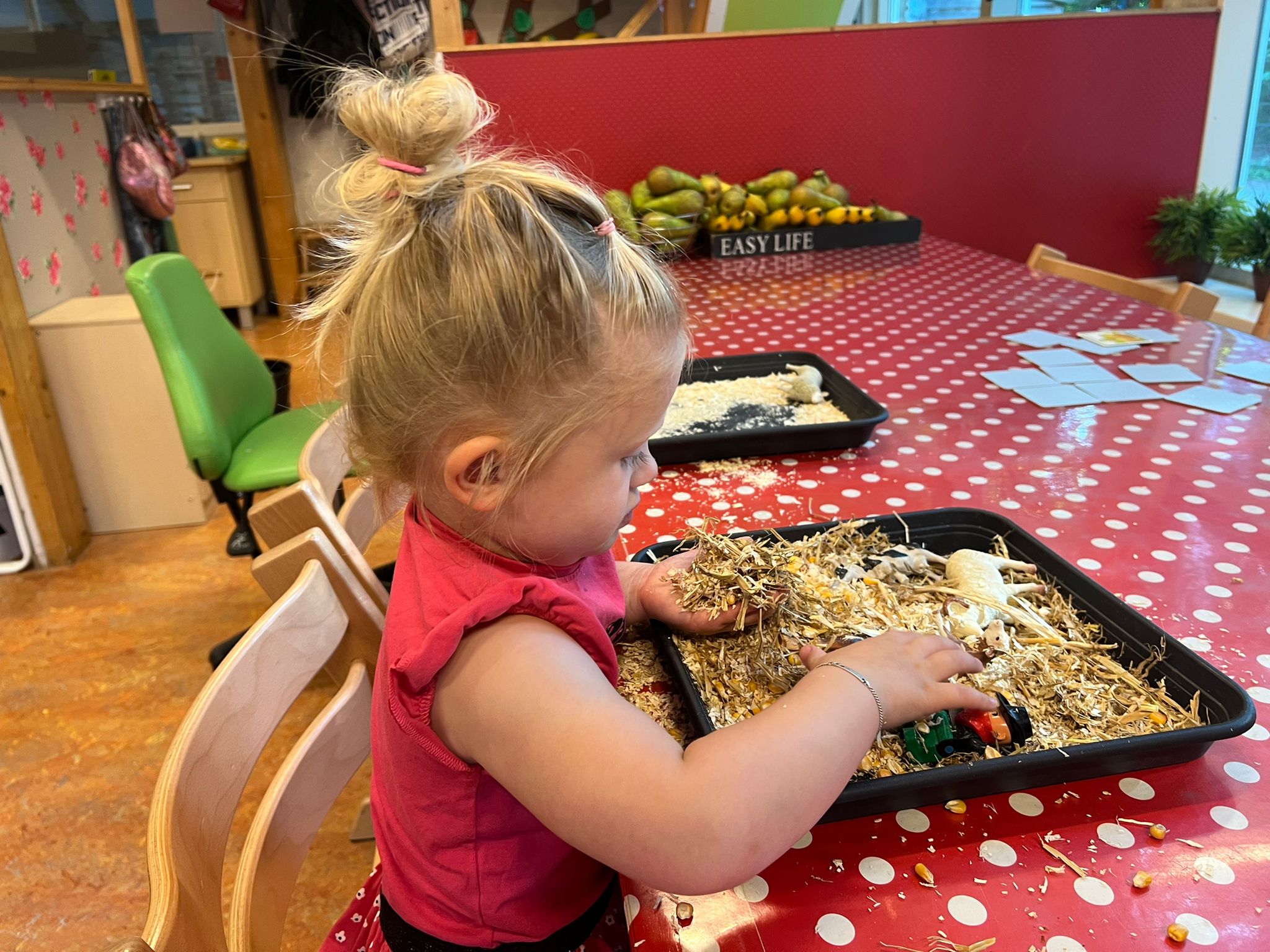 Hierdoor zijn wij bij Koppel-Swoe nog veel meer met verschillende ruimtes en echte materialen gaan werken, vervolgt Nina. “Een concreet voorbeeld? We laten de kinderen ook veel vaker kennismaken met echt fruit. Dat kun je ruiken, proeven, ervaren. Precies zoals de echte wereld is.”