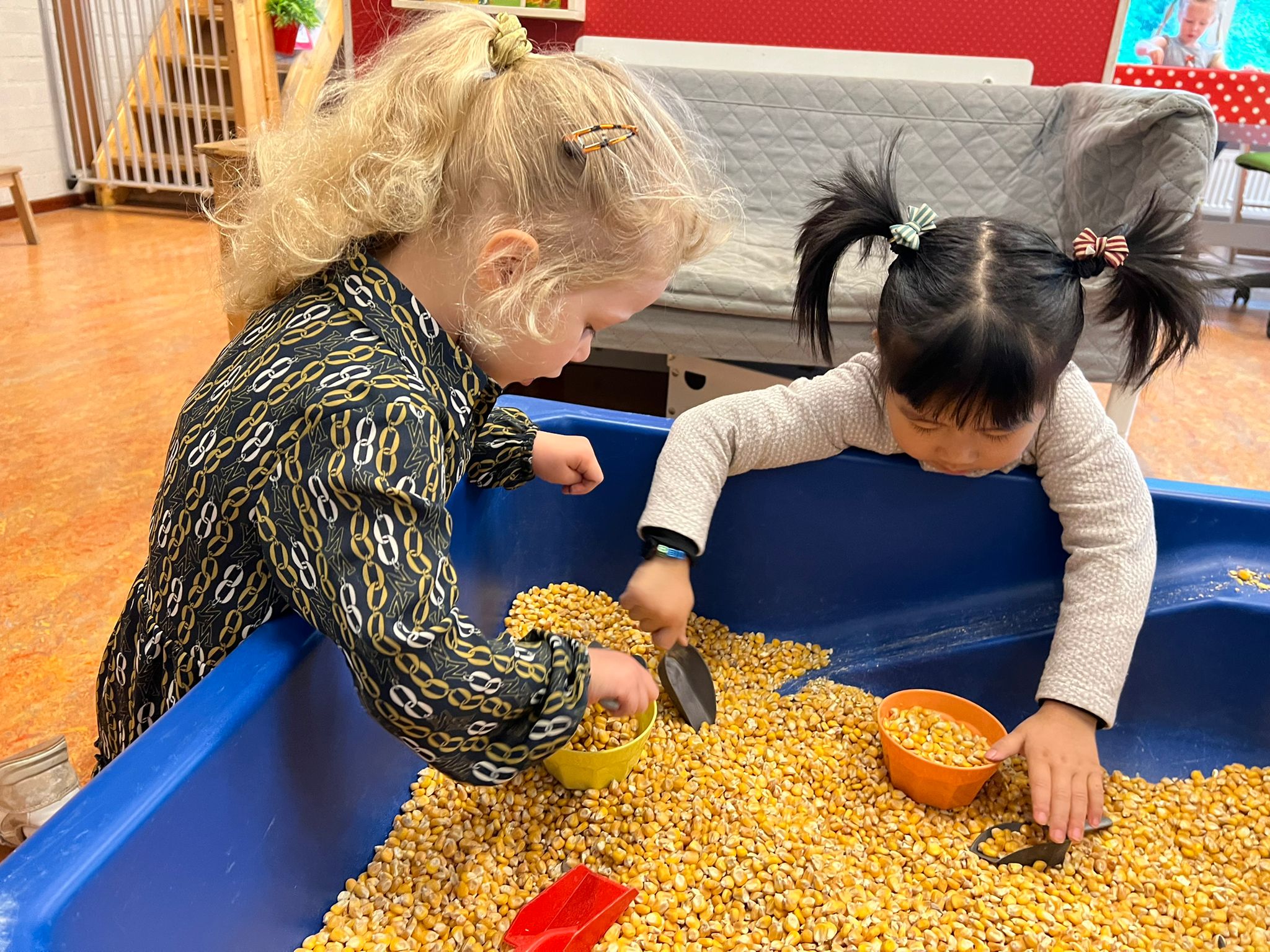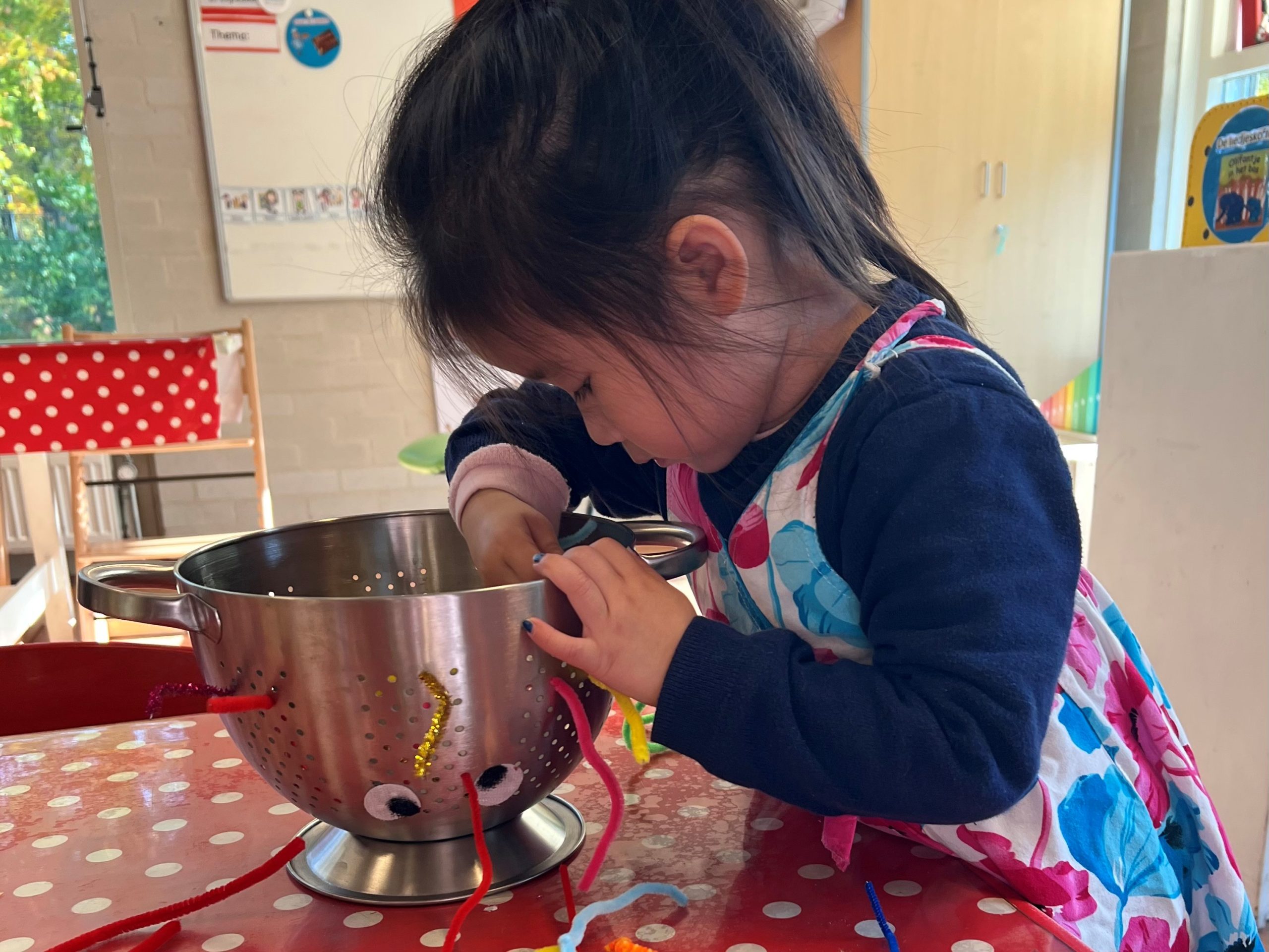 Dus niet ‘lente’ als thema nemen, maar ‘wij gaan naar de boerderij’. “De dagelijkse routine is ook bij ons belangrijk. Naast spelen hebben we dus ook veel meer aandacht voor samen opruimen. En heb je uiteindelijk smerige kleren, dan kun je ze zelf schoonmaken. Wij bieden activiteiten aan, zodat de kinderen zich echt ontwikkelen. We willen kortom dat kinderen de echte wereld nabootsen.”