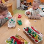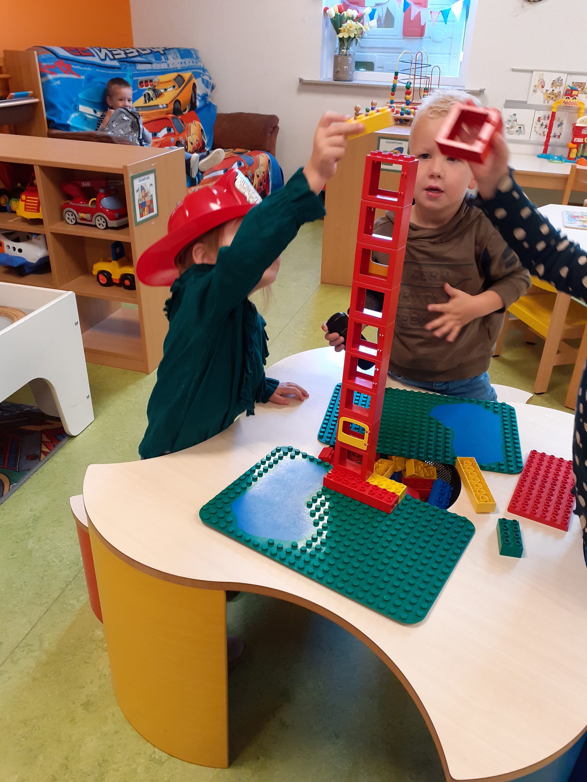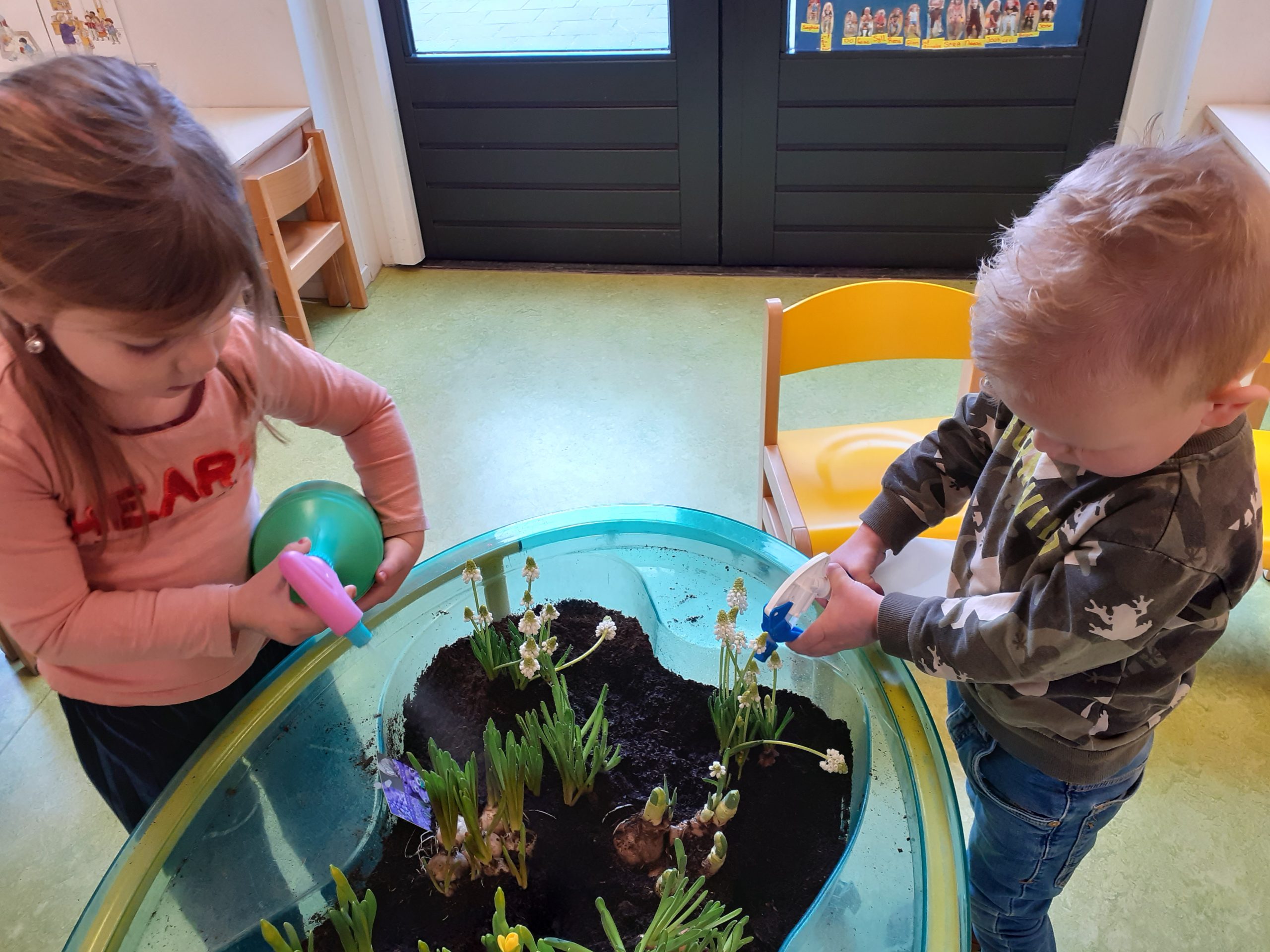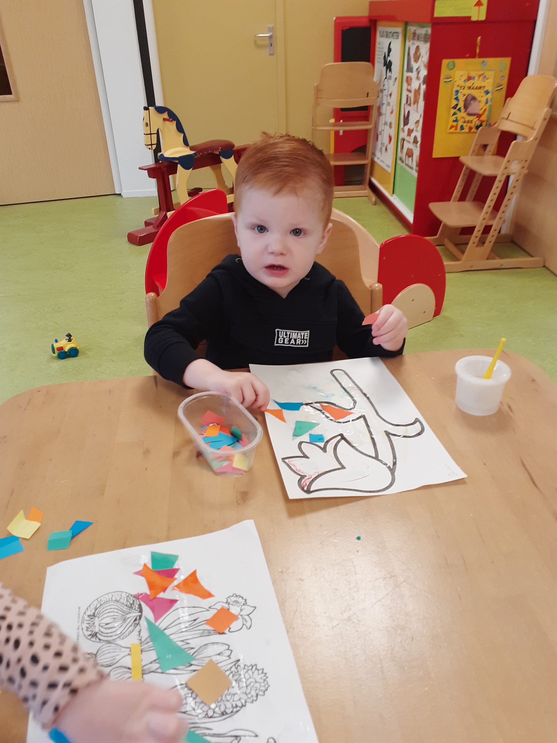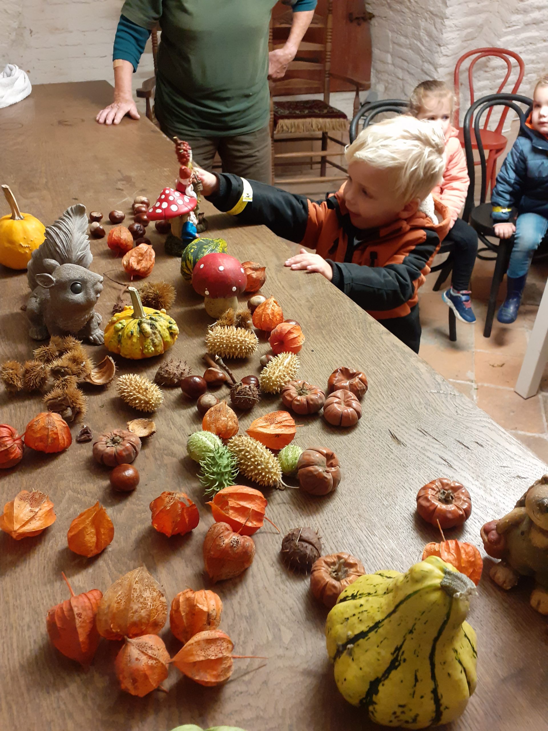 Buiten hebben we de eendjes in het water zien zwemmen en daarna zijn we weer terug naar ’t Muizenholletje gereden en hebben onze gevonden herfstschatten op de herfsttafel gelegd.