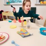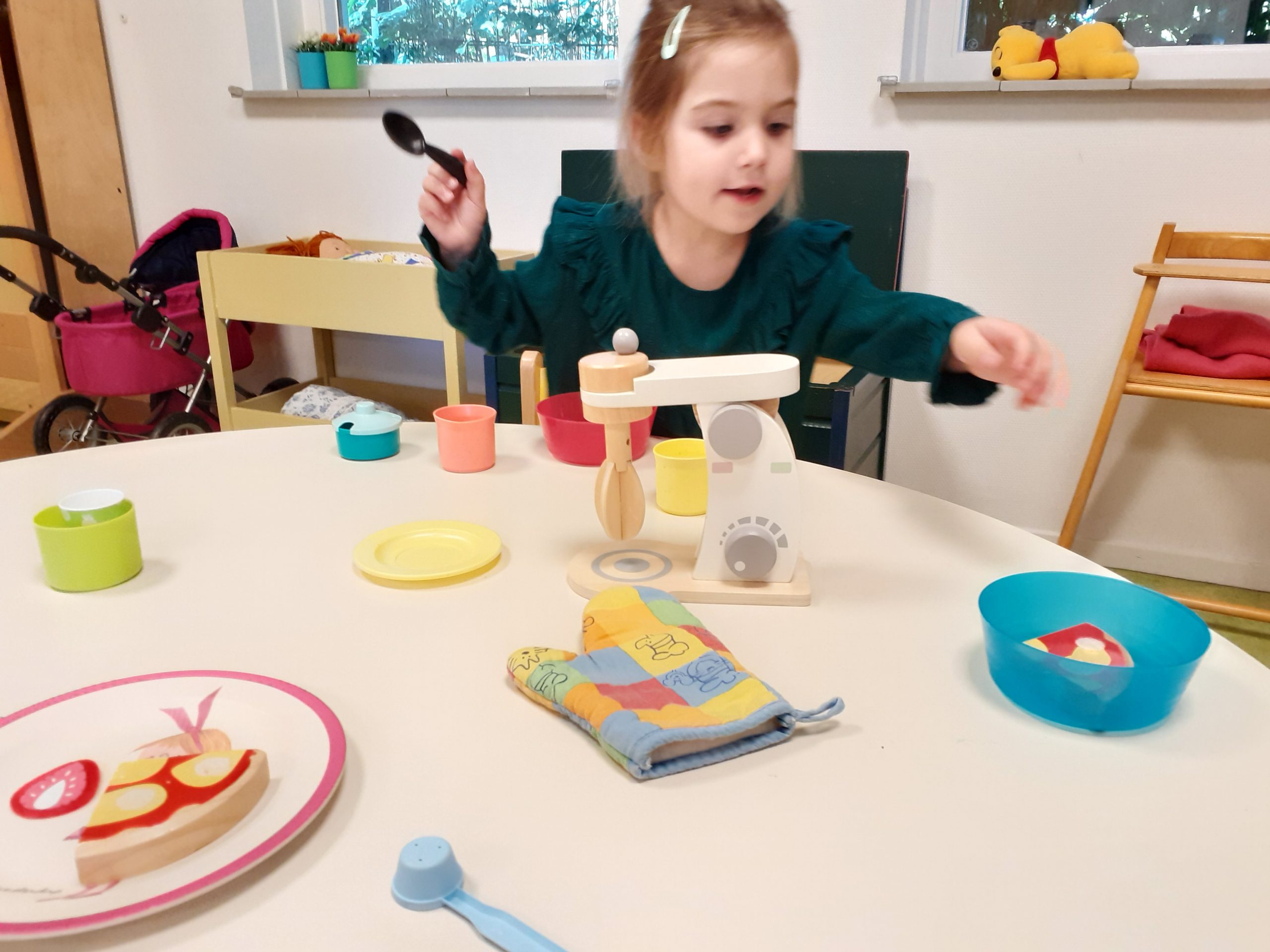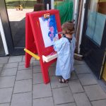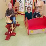 In het kasteel hebben we een lekker koekje gegeten en wat gedronken. Een paar peuters hebben mooie kleren van een ridder en een prinses gepast.