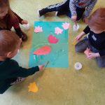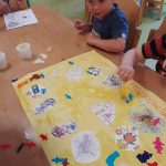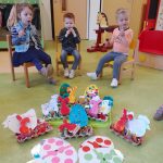 Daar aangekomen hoorden we dat er kabouters, eekhoorns en egels van de herfsttafel in het kasteel weggelopen waren. Of wij die met z’n allen wilden gaan zoeken in het bos? En dat hebben we gedaan! Onderweg hebben we mooie bladeren, kastanjes en een paar eikels gevonden. Gelukkig hebben we ook alle kabouters en dieren teruggevonden en veilig terug naar het kasteel gebracht!