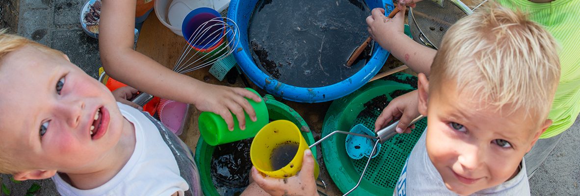 Naast binnen spelen kunnen de kinderen ook kiezen om lekker naar buiten te gaan. Daar spelen ze graag in de zandbak of fietsen ze op het plein.