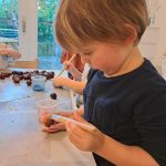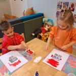 Na de schoenen werd er druk geoefend met je eigen sokken aandoen. Hé,dit lijkt wel een beetje op je schoenen aan doen! Tijdens deze week werd er druk geknutseld aan happy Socks, maar dit deden wij niet op papier maar onze eigen voeten werden versierd met verf. Verder werd er nog druk geoefend met het aandoen van onze broek en jas.
