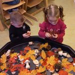 Tijdens dit thema werd er voorgelezen uit het boekje aankleden met Fien en Milo. Fien probeert zichzelf aan te kleden maar weet niet waar ze moet beginnen. Milo helpt haar om in de juiste volgorde de kledingstukken aan te trekken. Na het lezen, is het tijd voor de kinderen om te oefenen. Eerst starten wij met de schoenen. De hele week wordt er gekeken naar de verschillende schoenen en proberen de kinderen deze zelf aan toen doen. Eerst kijken welke schoen aan welke voet moet en dan proberen maar. De oudere kinderen lukte het al heel goed zelf waardoor ze de jongste kinderen goed konden helpen. Ook ontdekte wij dat elke schoen een andere voetafdruk heeft. Je liep eerst door een bak met zand en bekeek daarna wat voor afdruk er in het zand was ontstaan.