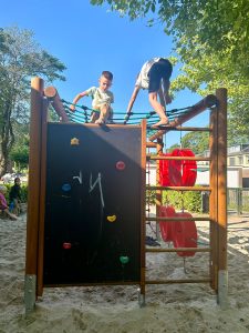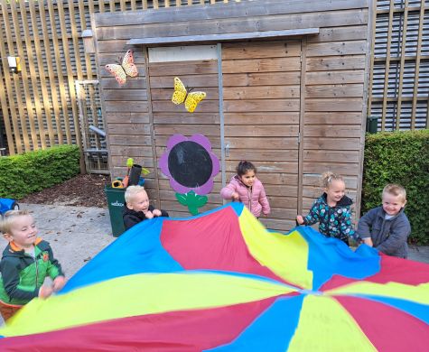 Peuteropvang de Buurtkabouters zit met de Hoge Weerdschool en de W.G. v.d. Hulstschool in hetzelfde gebouw. Ondanks dat ieder een eigen ingang heeft, zien we elkaar geregeld. De buitenterreinen liggen om het gebouw heen. Zo ook aan de achterkant, waar wij ons buitenplein hebben. Als wij buiten spelen kunnen we contact hebben met de kinderen van beide scholen. Erg leuk zeker als er broertjes of zusjes op school zitten. Maar ook peuters die doorstromen blijven we op die manier zien. Elke paar weken gaan de peuters spelen met de kleuters van de scholen. Soms binnen in de klas en soms buiten. Zo is de overstap voor een peuter naar de basisschool minder groot. Ze kennen de juffen, de kleuters en het lokaal al.