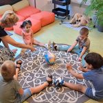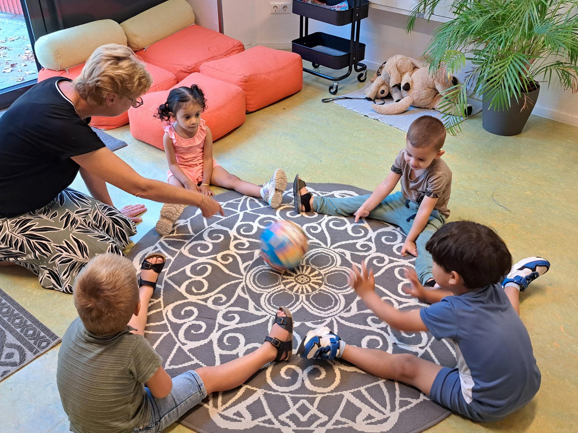 Na 6 weken zomervakantie moeten peuters altijd weer even wennen aan de structuur en regels van de speelzaal. Daarom beginnen we met het thema ‘Welkom’. We praten over en bekijken onze dagritmekaarten. Dit zijn foto’s van de verschillende kringen en activiteiten. Structuur is erg belangrijk zeker in het begin bij nieuwe kinderen. Wat gaan we doen, wat komt eerst en wat daarna. Door het gebruik van de dagritmekaarten krijgen de peuters duidelijkheid, zorgt voor een veilig gevoel en groeit hun vertrouwen. In de eerste kring vertellen we daarom ook altijd wat we die ochtend gaan doen. Ook bekijken we onze tassen en wat we meenemen naar de speelzaal. We oefenen onze namen door middel van een liedje en het rollen van de bal naar de volgende peuter. Met spelmaterialen kunnen de peuters het ritme naspelen. Zoals een schooltje met poppetjes, maar ook een kring maken van siliconen poppetjes.