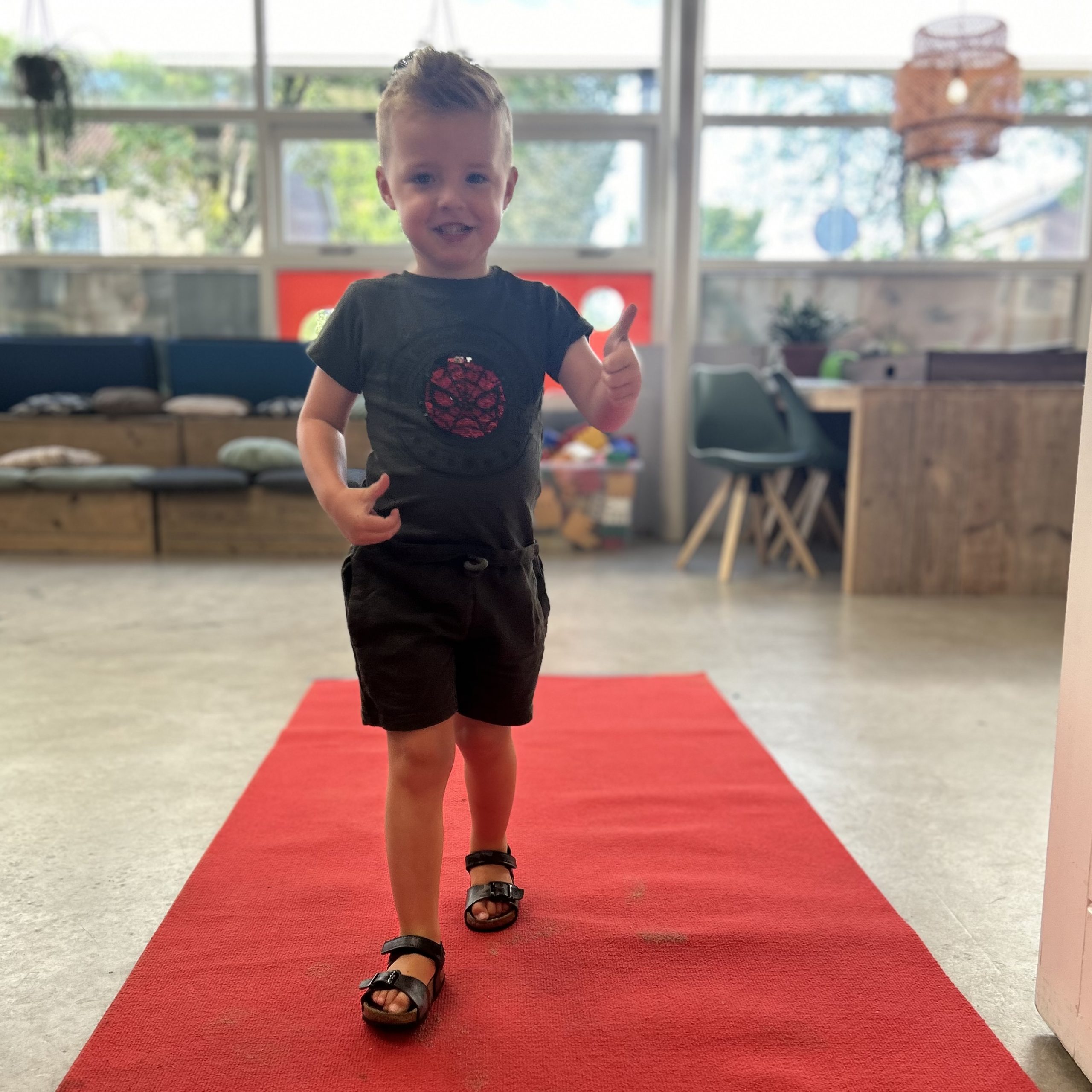 Om het jaar op een leuke manier in te luiden, lag er voor onze groep een rode loper. Een voor een mochten de peuters over de rode loper, als echte filmsterren. Want uiteindelijk draait het toch echt om de peuters!