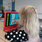 Er is geverfd en geplakt met kleuren en vormen. Deze kunstwerken pronken in ons lokaal en zullen we daarna bewaren in de portfolio’s van de kinderen. Weten jullie dat de portfolio’s altijd ingekeken mogen worden? De kinderen zijn hier trots op en vinden het geweldig om samen door te bladeren!