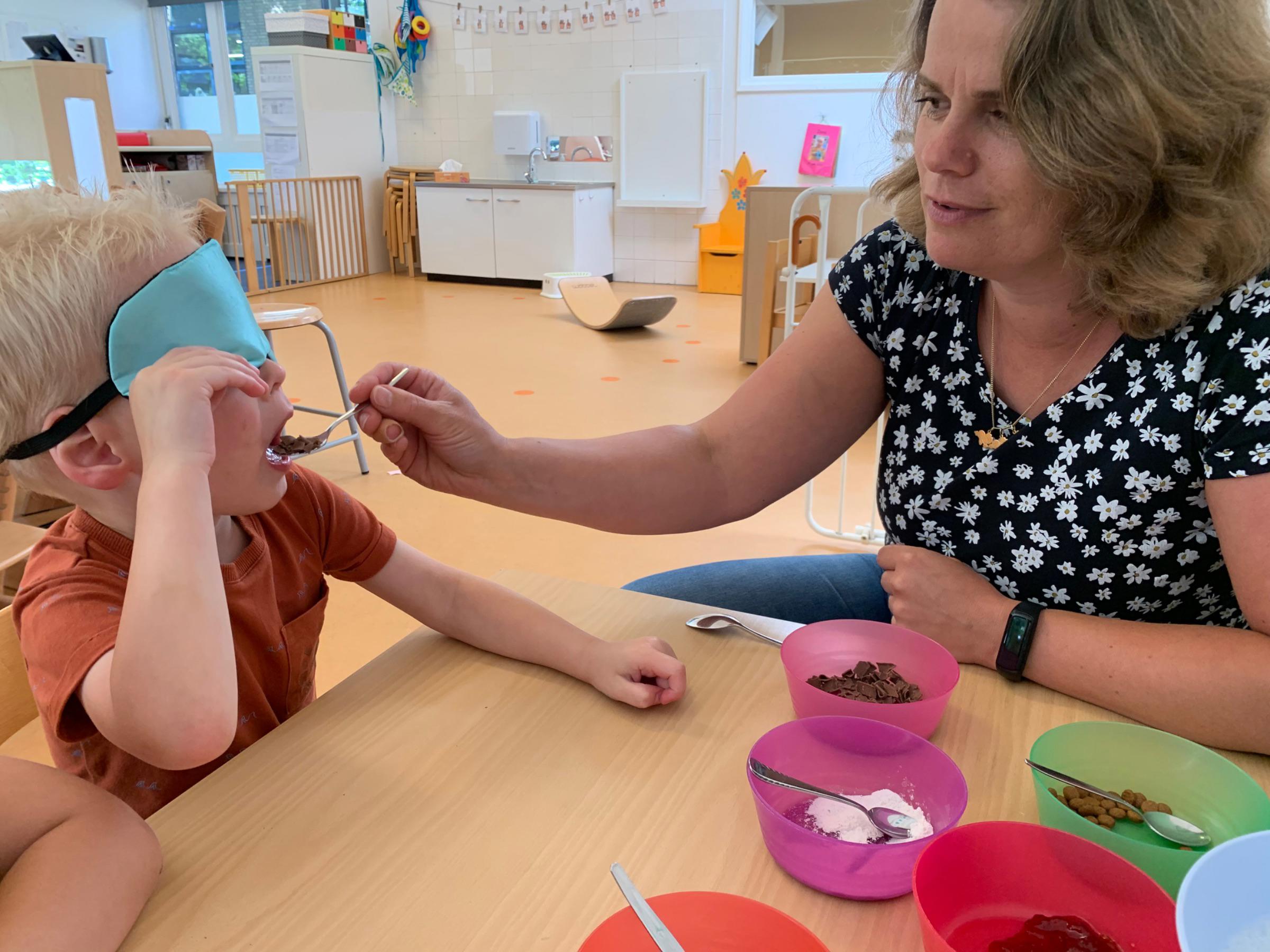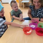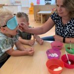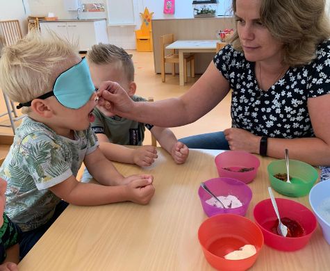 Het ontdekken van licht op de lichttafel bij kinderopvang Kierewam
