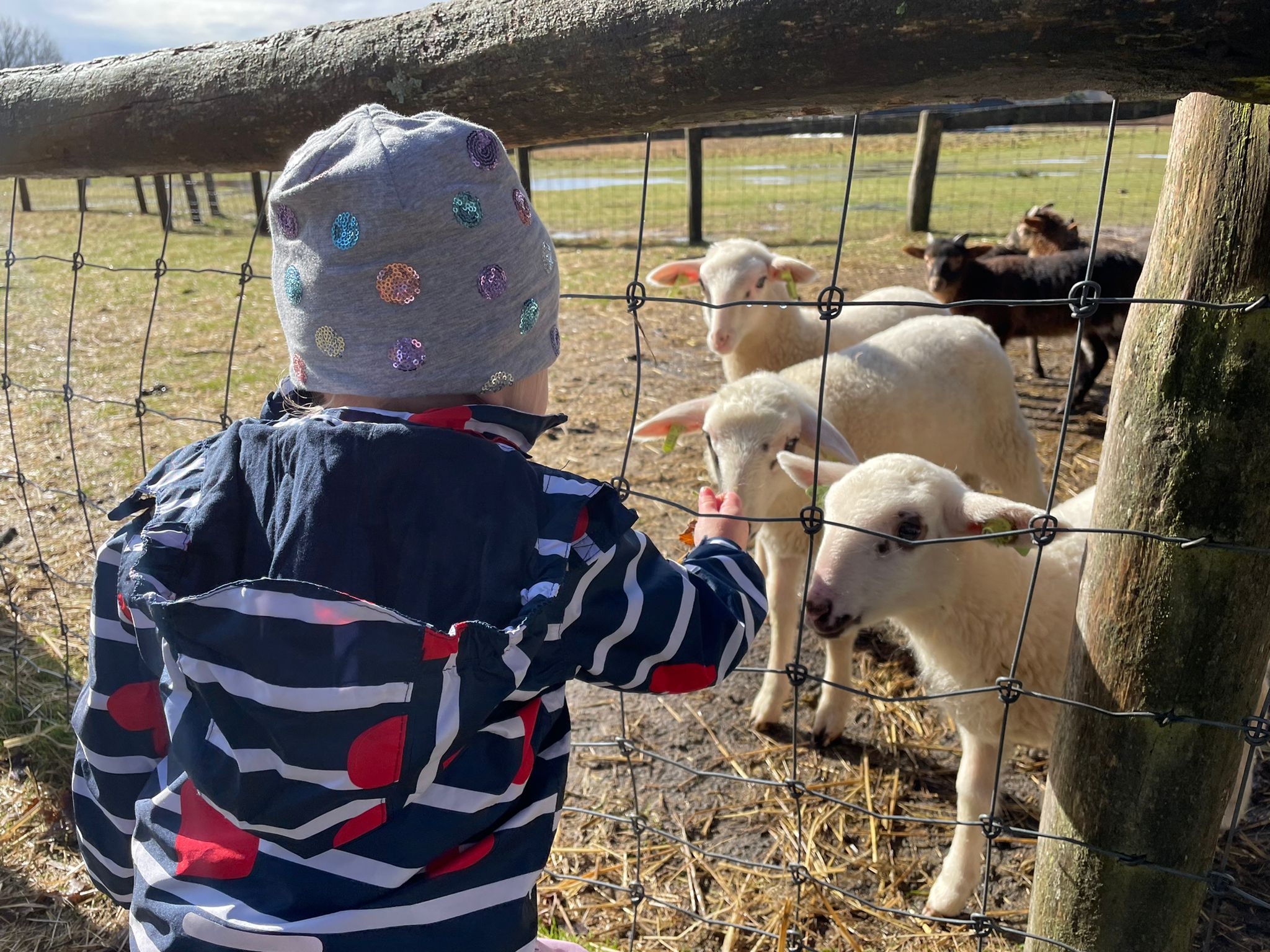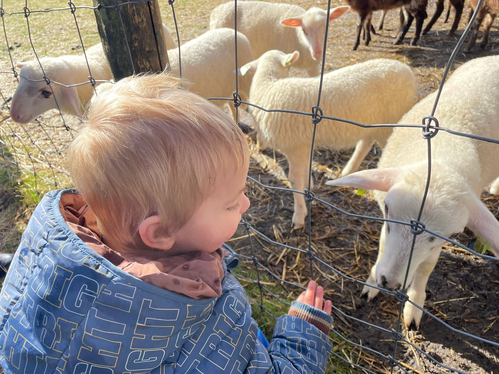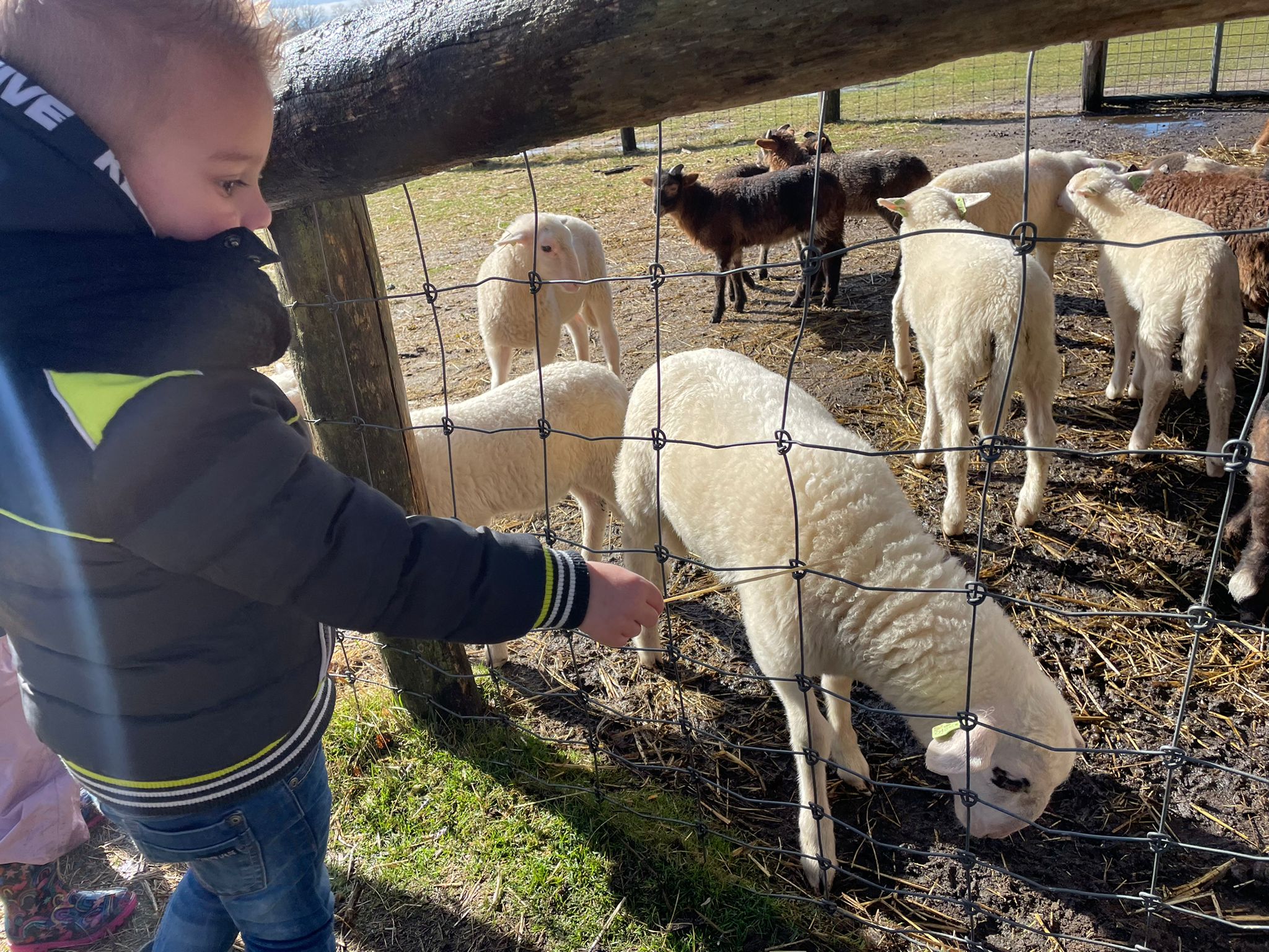 De schapen met lammetjes hebben we gezien en gevoeld hoe lekker zacht een lammetje is. De schapen kregen van de peuters lekkere brokjes en die hebben ze heel snel opgegeten. In het kippenhok hebben we eieren gevonden die door de kippen gelegd waren. We mochten ze meenemen en lekker thuis koken en opeten.