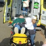 Er stond een hele grote tractor op het erf, een MF zei Lars, daar mochten de peuters inklimmen en even achter het stuur zitten.