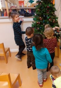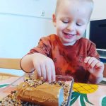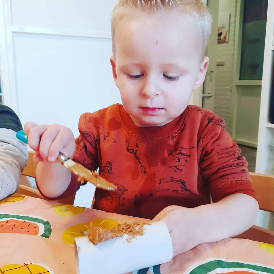 Buiten zoeken de kinderen takjes: grote, dikke, lange en korte. Deze mogen ze in een grote homp natuurklei prikken. Zo maken ze hun eigen boom, voor Coco. Wat een prachtige kunstwerken zijn dit geworden zeg! De aankomende weken gaan we het boek nog verder uitwerken; zo gaan we nog voerhangers voor de vogeltjes maken en zelf een “Coco” knutselen.