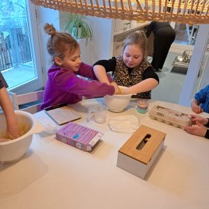 Dit klinkt nu wel heel gezond allemaal maar er is uiteraard ook nog wel ruimte voor een ongezonde traktatie als er iemand jarig is of gewoon tussendoor koekjes bakken of een spelletje met slagroom. Uiteraard houden wij altijd rekening met kinderen die niet alles mogen eten. Wij zoeken dan wel naar alternatieven zodat deze kinderen ook mee kunnen doen.