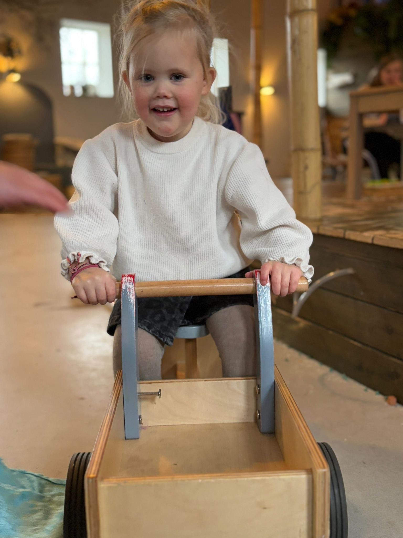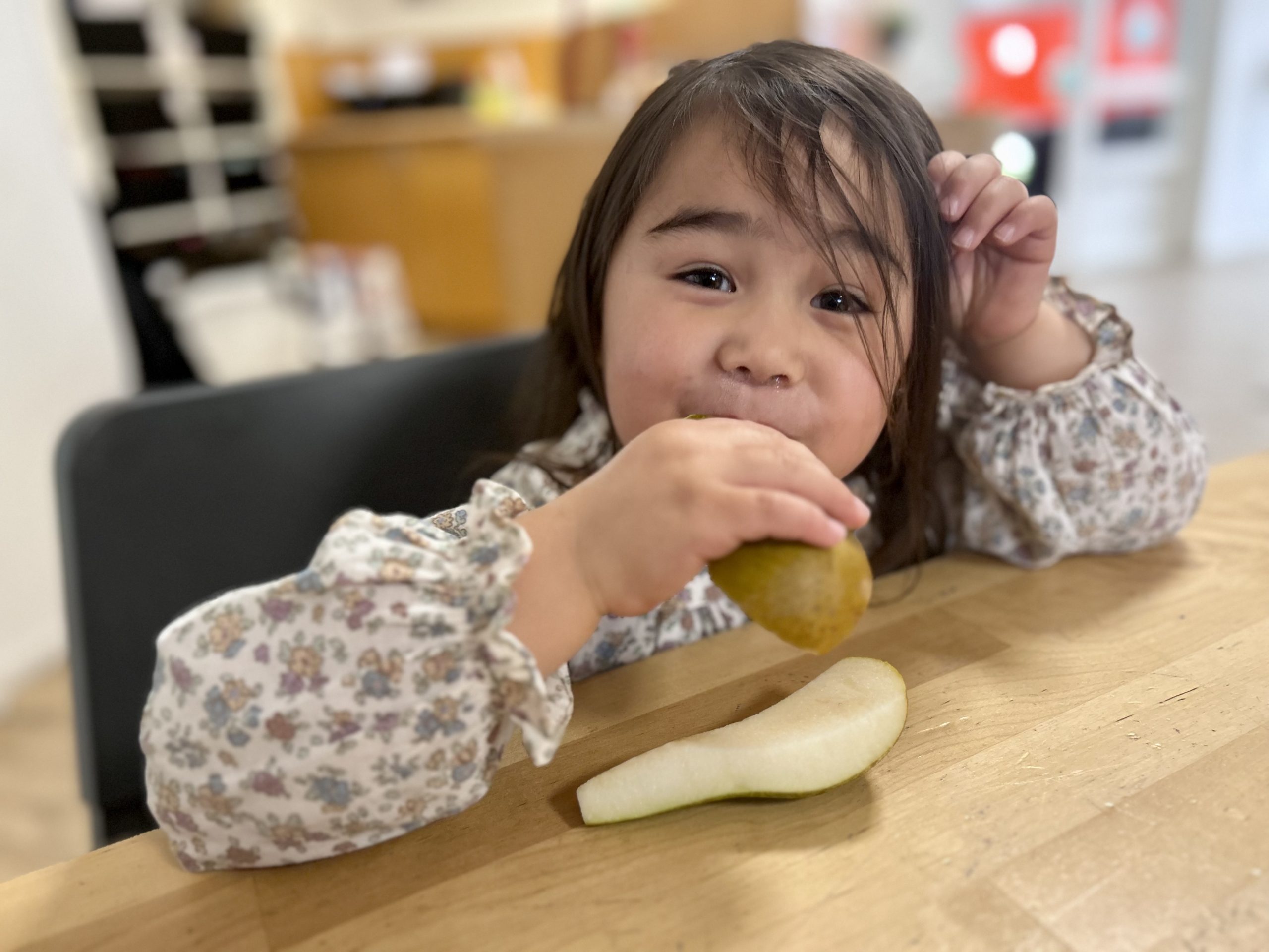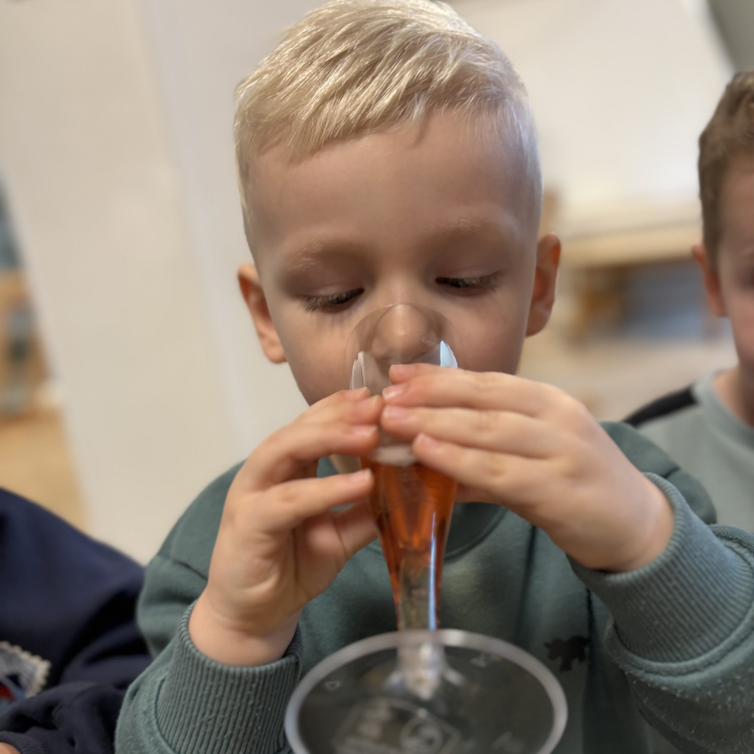 De eerste weken was dat nog wel wennen want we kregen nog vaak de vraag wie de koekjes mocht uitdelen. Nu is iedereen eraan gewend en wordt de tweede cracker ook met smaak weggewerkt. De kinderen mogen kiezen tussen een luchtige volkoren cracker, rijstwafel of vierkante cream cracker. Daarop mag kaas, smeerkaas, vegapaté, cervelaat, pindakaas. Als kinderen dan nog steeds trek hebben, dan mogen ze de schaal met groente (worteltjes, komkommer, tomaatjes) die ook altijd bij ons eetmoment aanwezig is, leegeten.
